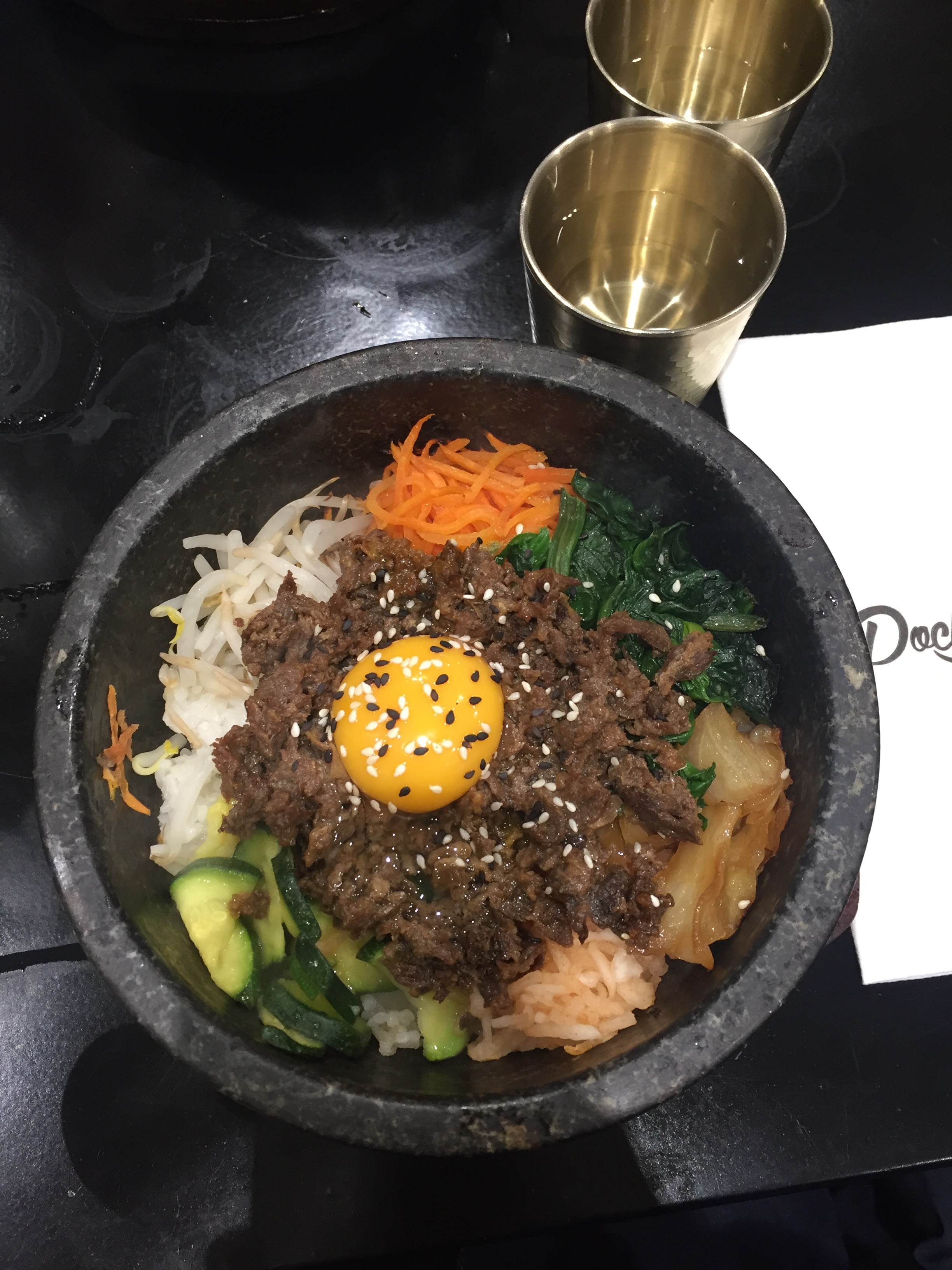 En plus d'être épuré et moderne dans sa déco, le Dochilak réserve de nombreuses surprises en bouche. La cuisine coréenne est devenue l'une de mes cuisines favorites depuis que j'ai goûté leur plat typique : le bibimbap. Réalisé dans sa plus pure tradition, ce bol de riz garni de différentes saveurs est nourrissant et coloré. Servi dans un bol en fonte cuit sur le feu, vous pouvez entendre la garniture en train crépiter comme si vous étiez en plein barbecue. Des accompagnements marinés vont chatouiller vos papilles gustatives de mille et unes façons. Leur fondant au chocolat yuzu est une fusion délicate et parfumée. Vous pourrez déguster leurs mets sur place ou à emporter.