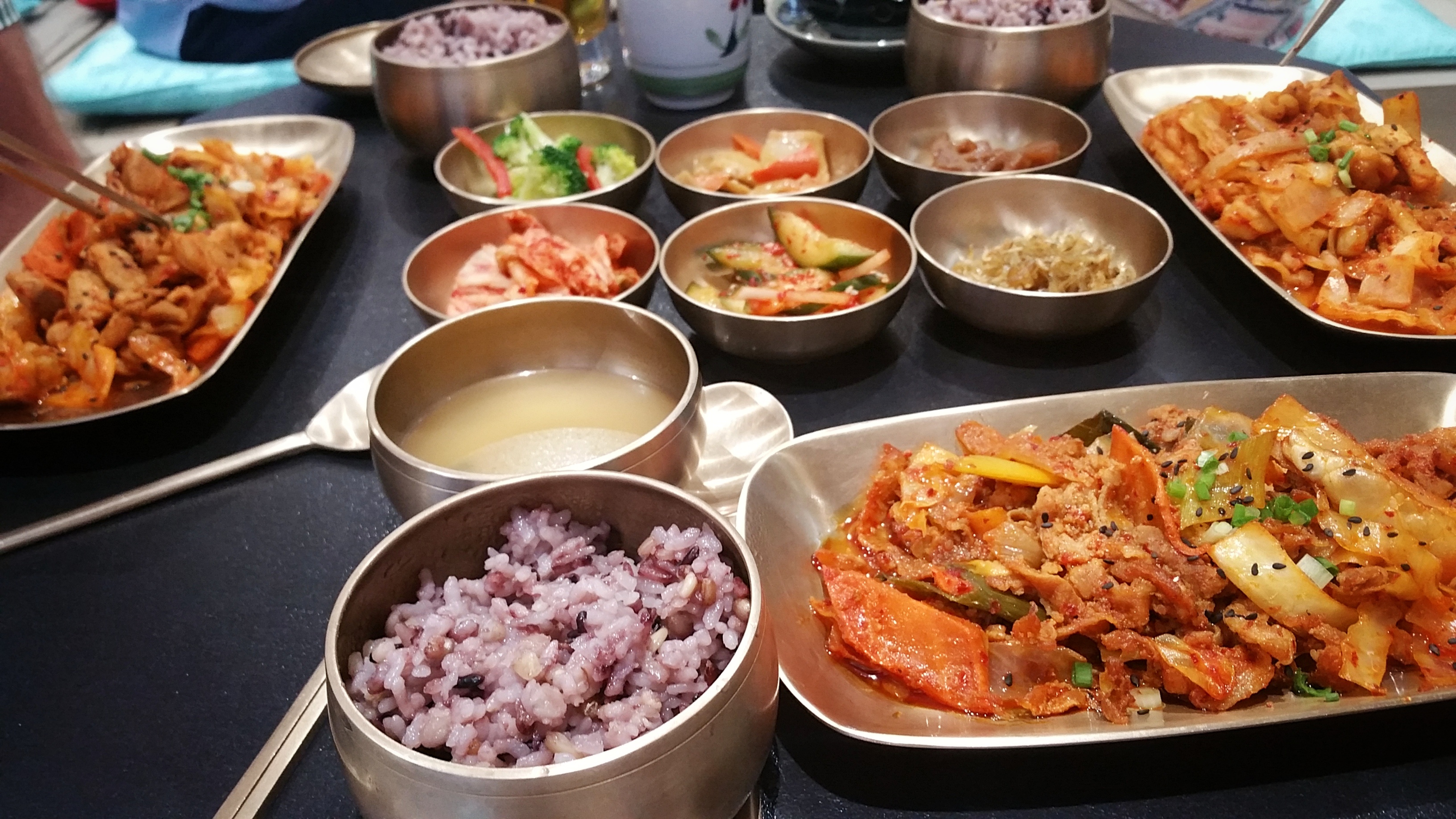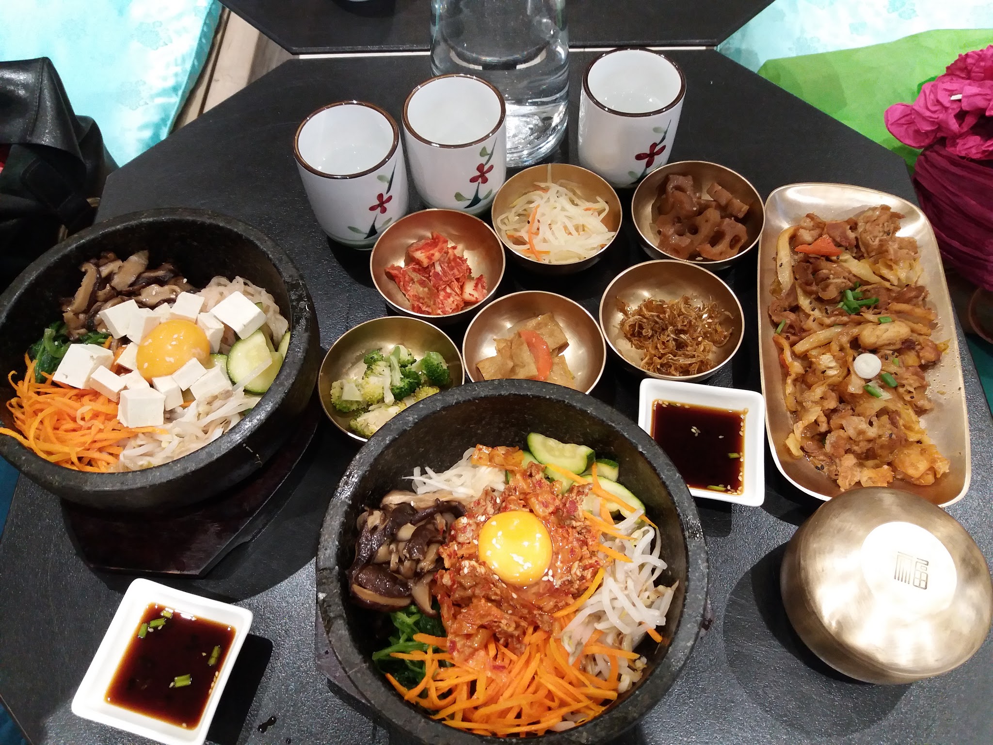 Cuisine coréenne bonne avec du choix (bulgogi, bibimbap, ragout épicé, banchan, raviolis et même des desserts), mais les raviolis étaient rikiki et pas mal d'attente avant d'avoir les plats.