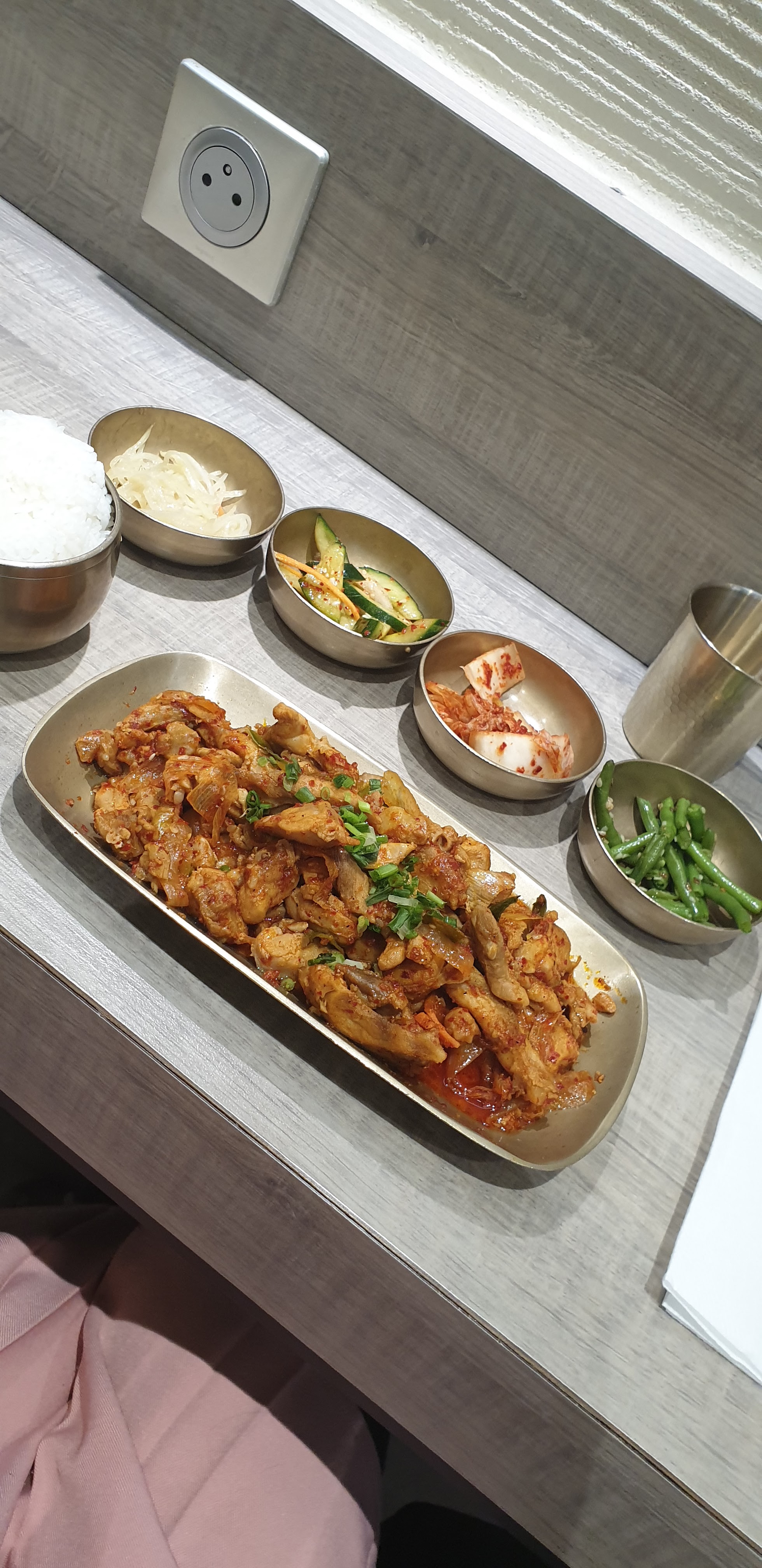 Avec ma compagne nous avions l'habitude d'aller au KINTARO qui se situe juste à côté et pour une fois nous avons voulu tester la cuisine coréenne et on n'a pas été déçu du voyage . Les menus sont pas chers et la qualité est très bonne. Nous avons pris le menu à 19€ avec entrée + soupe + plat et dessert. En entrée j'ai pris le poulet grillé à la sauce piquante et pour une entrée la quantité est suffisante et le goût est bien relevé. La soupe est un bouillon a la viande qui est juste parfait après l'entrée . Le plat , j'ai pris Bibimchap au poulet et franchement c'est une sacrée découverte j'ai juste adoré ! Pour finir , j'ai pris le riz gluant avec une boisson a la cannelle c'est juste le paradis Je vous conseille ce restaurant les yeux fermés