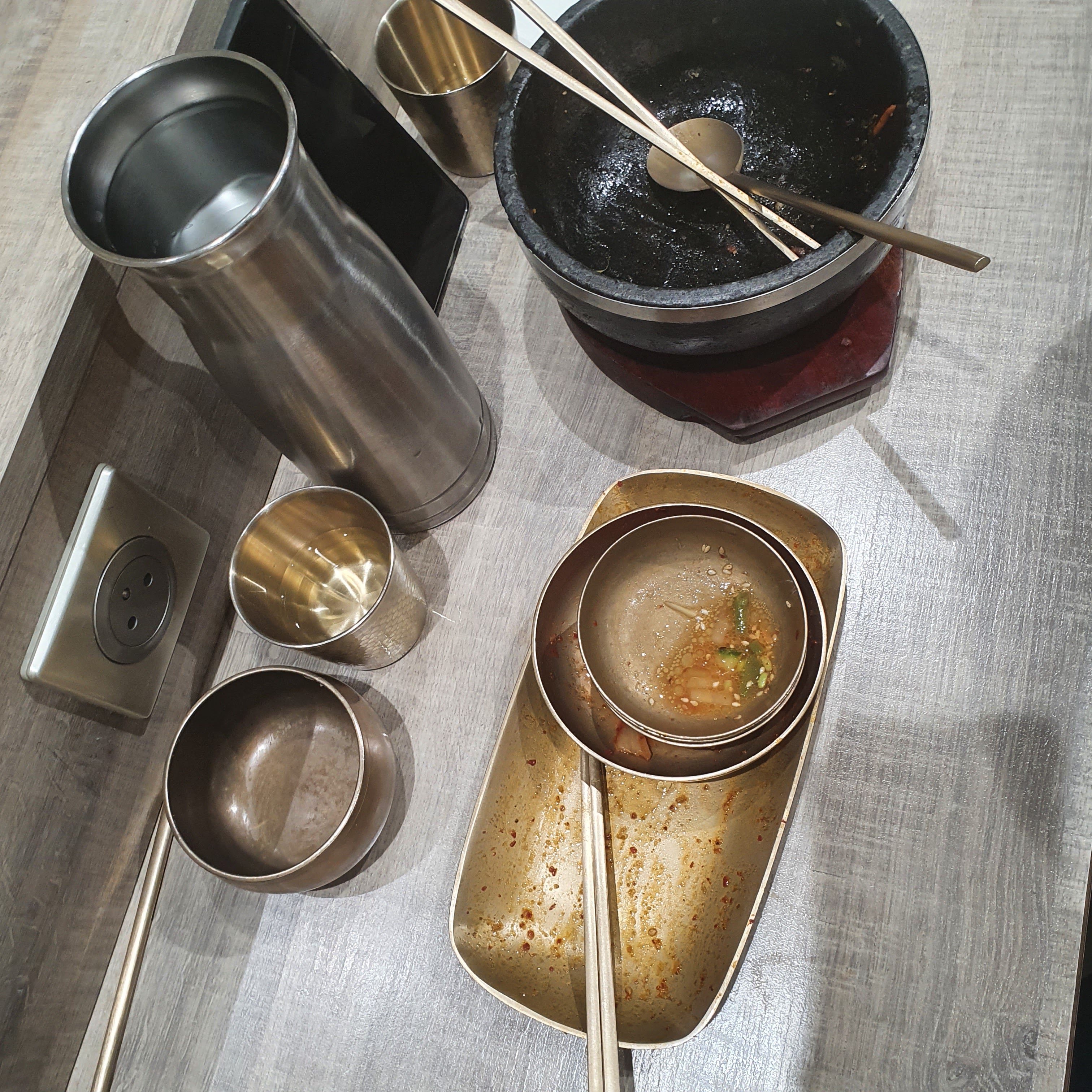 Une ambiance chaleureuse et conviviale nous permettant de bien profiter de l’expérience culinaire de ce restaurant. Un très bon service, rapide et efficace. Petit bémol, les bibimbap sont servis dans des plats très chauds et qui continue de cuir en continu ce qui brûle le riz au fond du bol.