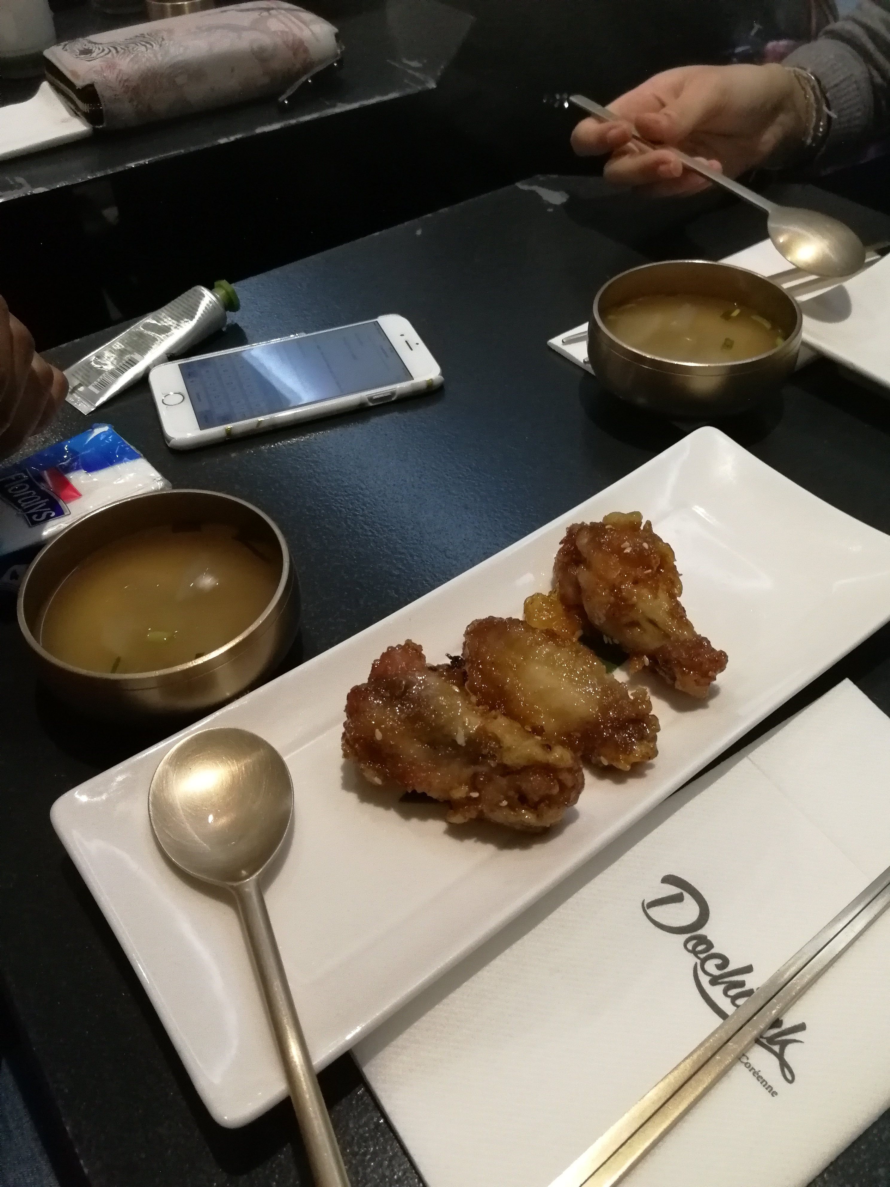 Le bimbimbap est un peu décevant, on s'est vite retrouvés écoeurés. Heureusement que les ailes de poulet caramélisées en entrée ont rattrapé le repas.