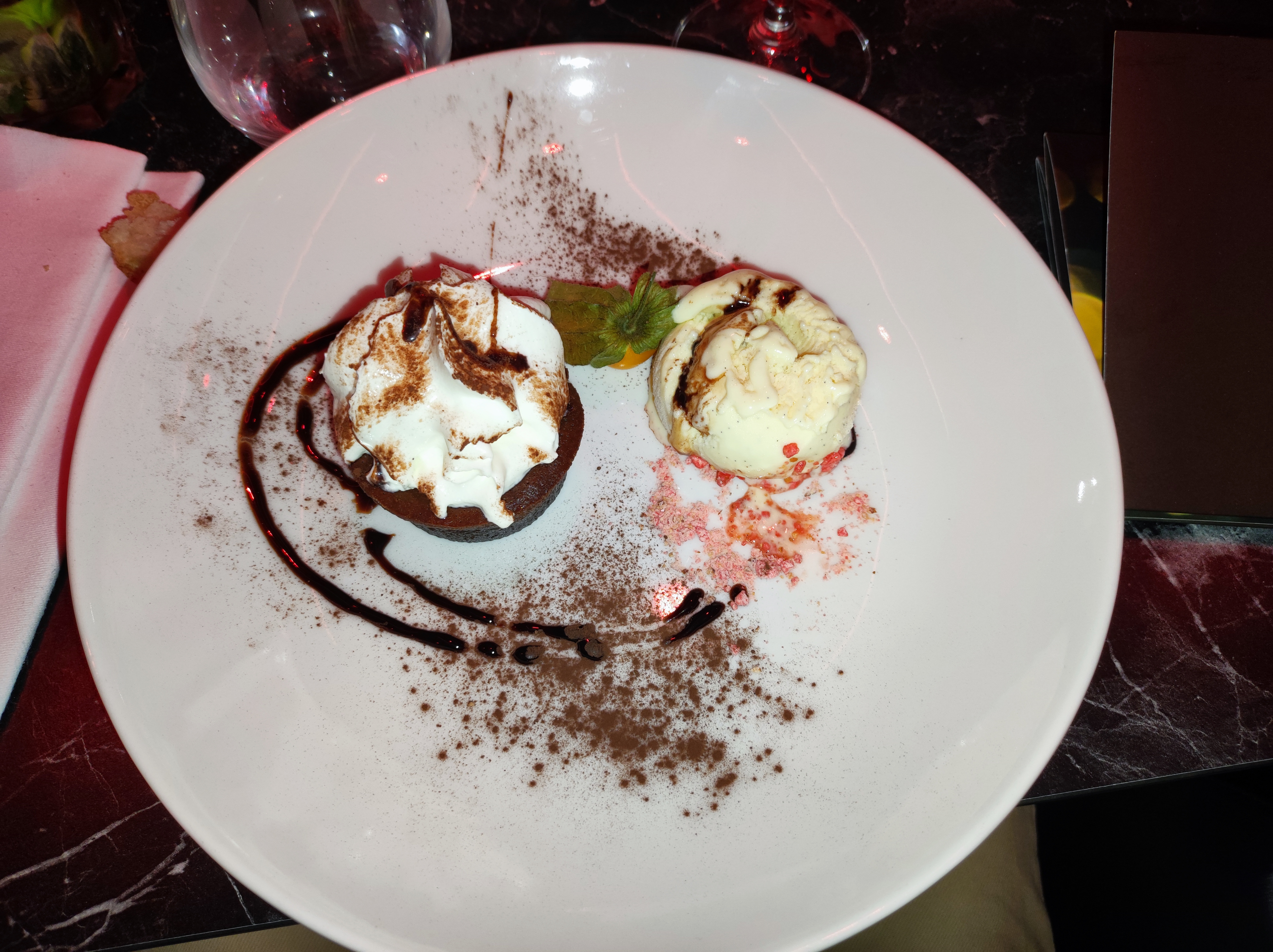 Très mauvaise communication entre les services, et aussi dans le même service. Peut-être dû à un système qui encourage la concurrence entre collègues. Nourriture bonne, mais pas très généreuse et donc assez chère pour ce qu'on peut y manger. Un serveur sympathique, mais les personnes du vestiaire pourraient faire un effort. Bref, ambiance un peu spéciale, pas pour moi, mais tout se teste ! Le fondant est appelé ainsi par le personnel, mais nommé comme moelleux sur la carte. De plus, il s'agit bien d'un moelleux. Si non, un fondant trop cuit !