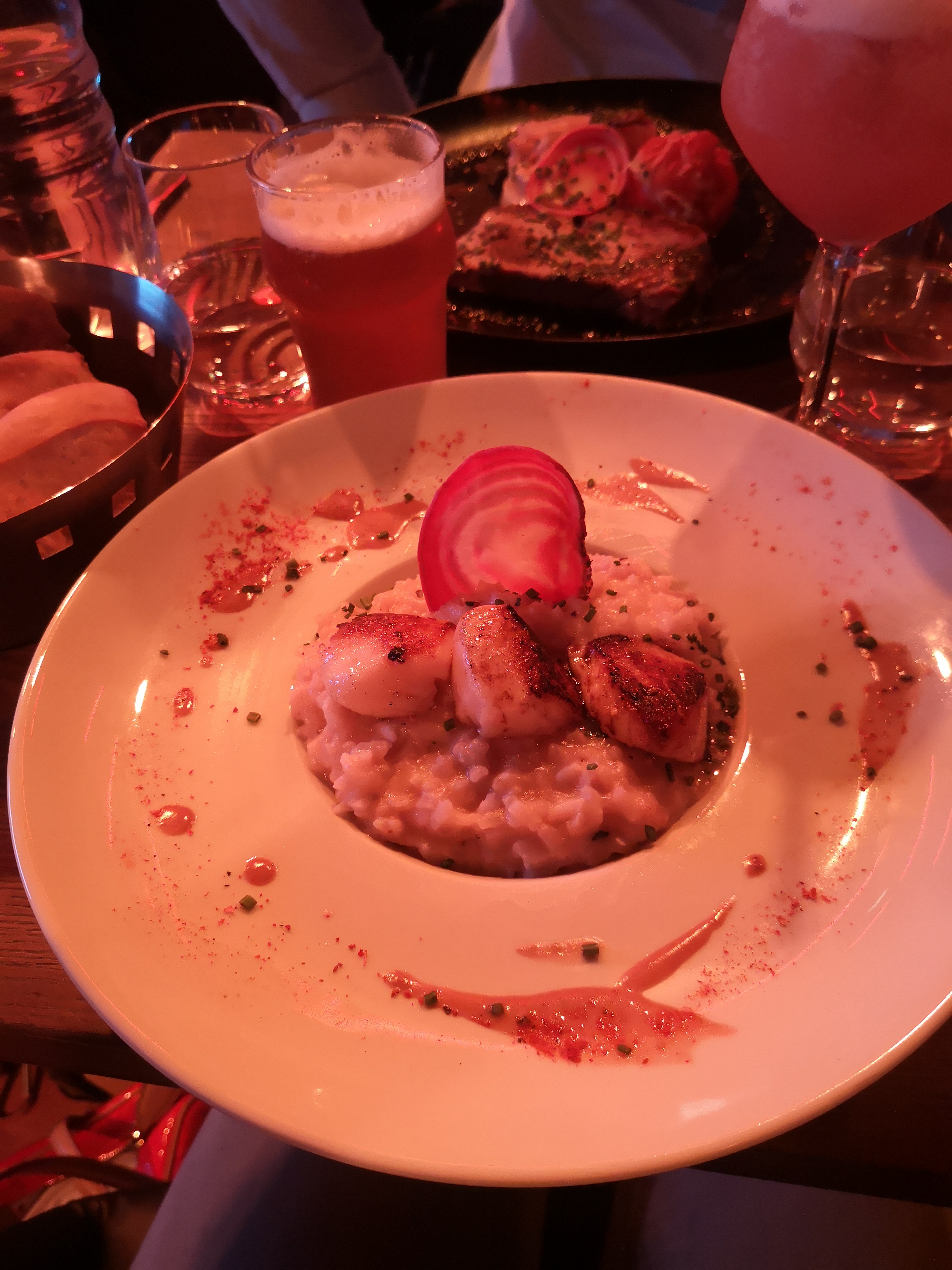 Table réservée pour un diner entre collègues un soir de semaine. Accueil plutôt froid (j'avais déjà eu cette impression au moment de la réservation). Un temps d'attente très long que ce soit pour avoir les cartes que pour la prise de commande et le service. Nous sommes arrivés à 20h15 et nous avons été servit à 22h. L'apéritif arrive en même temps que les entrées. Les serveurs sont vite dépassés malgré le peu de client. C'est dommage car le cadre est plutôt sympa et les plats plutôt bon et copieux.