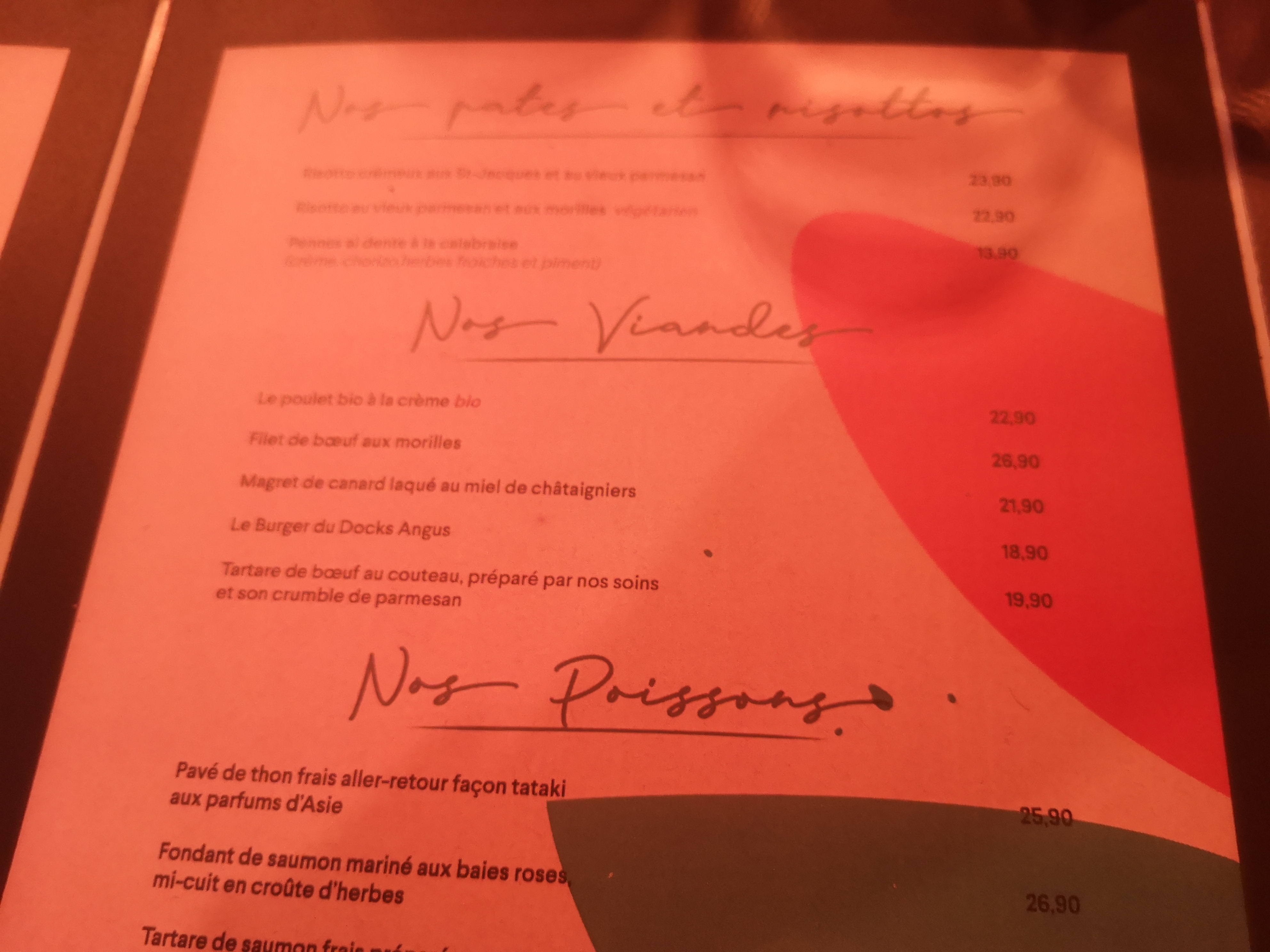 Idéalement placé sur les jolies rives de Saone, le Docks 40 est vraiment pratique pour ceux souhaiter manger et poursuivre festivement leur soirée. Les serveurs sont souriants et arrangeants. La terrasse est parfaite en été, avec musique lounge et vue sur la Saone. Le repas est préparé avec soin. On regrettera quelque options sur la carte, comme une alternative veggie par exemple. Les prix restent assez élevés tout de même.