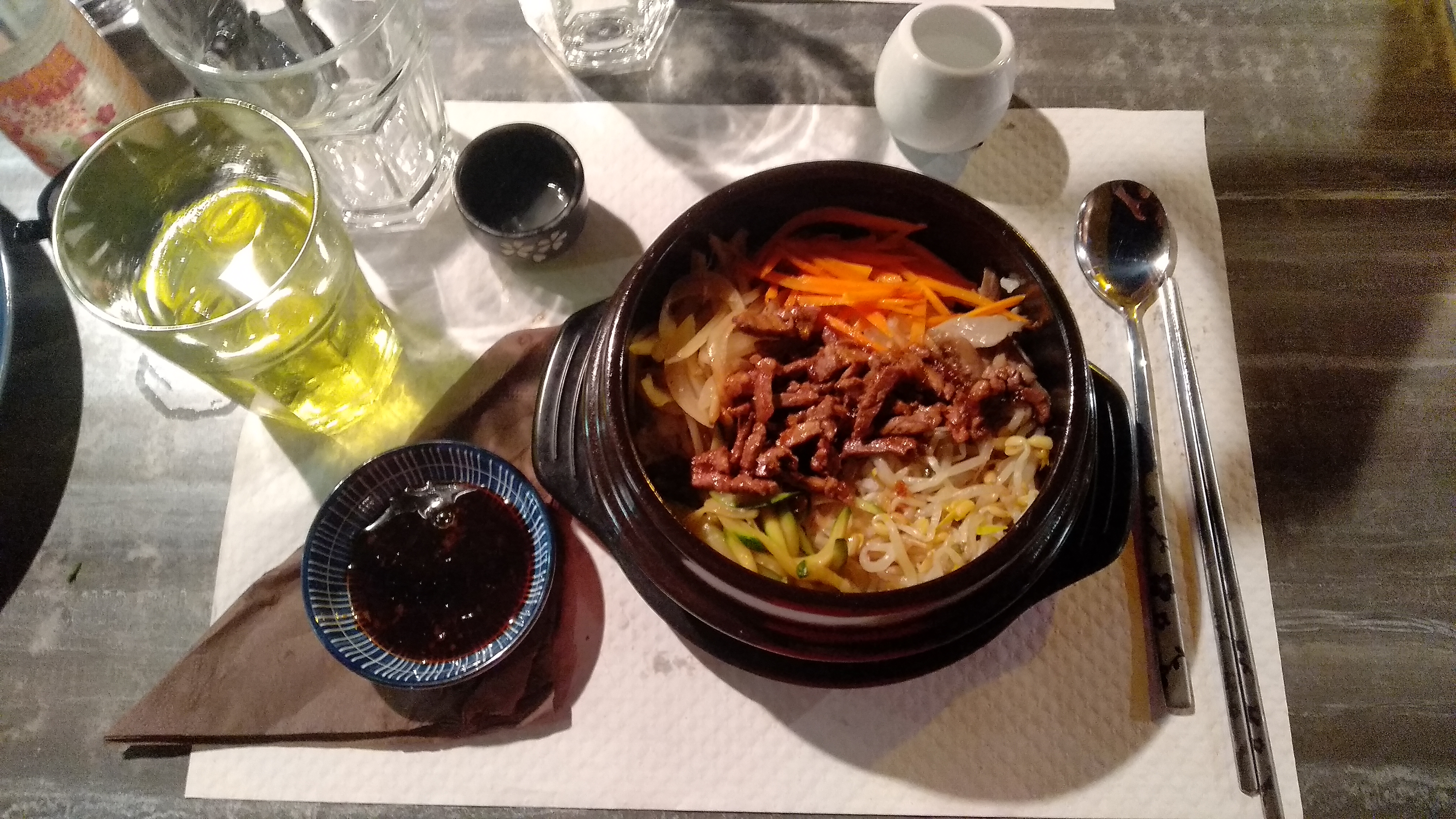 Découverte totale de la nourriture coréenne. Nous n'avons pas été déçu. La gérante est très agréable et sympathique. À refaire ! Manque un peu de chauffage dans la salle.