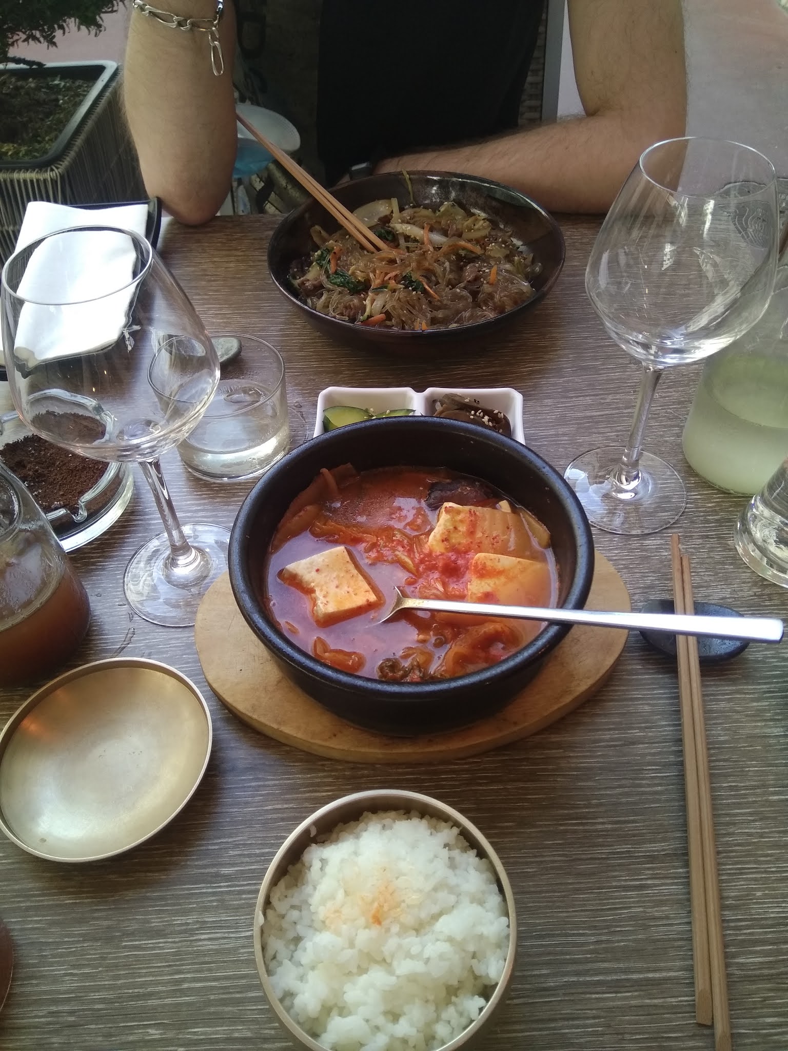 Visité le 12 septembre, ma femme et moi (avons vécu quelques années en Corée à Busan) avons tous deux été déçus. Quantité : petite portion, assez chère si vous connaissez les différents plats de la carte, et en plus les accompagnements non inclus, du kimshi de qualité moyenne (pas fait maison - oui certains européens adorent le vrai kimshi, croyez-le ou non) et de l'eau gazeuse à 8eur ! Pour les touristes, à éviter si vous espérez trouver de la vraie cuisine coréenne à un prix correct comme nous le pensions. Le personnel est gentil