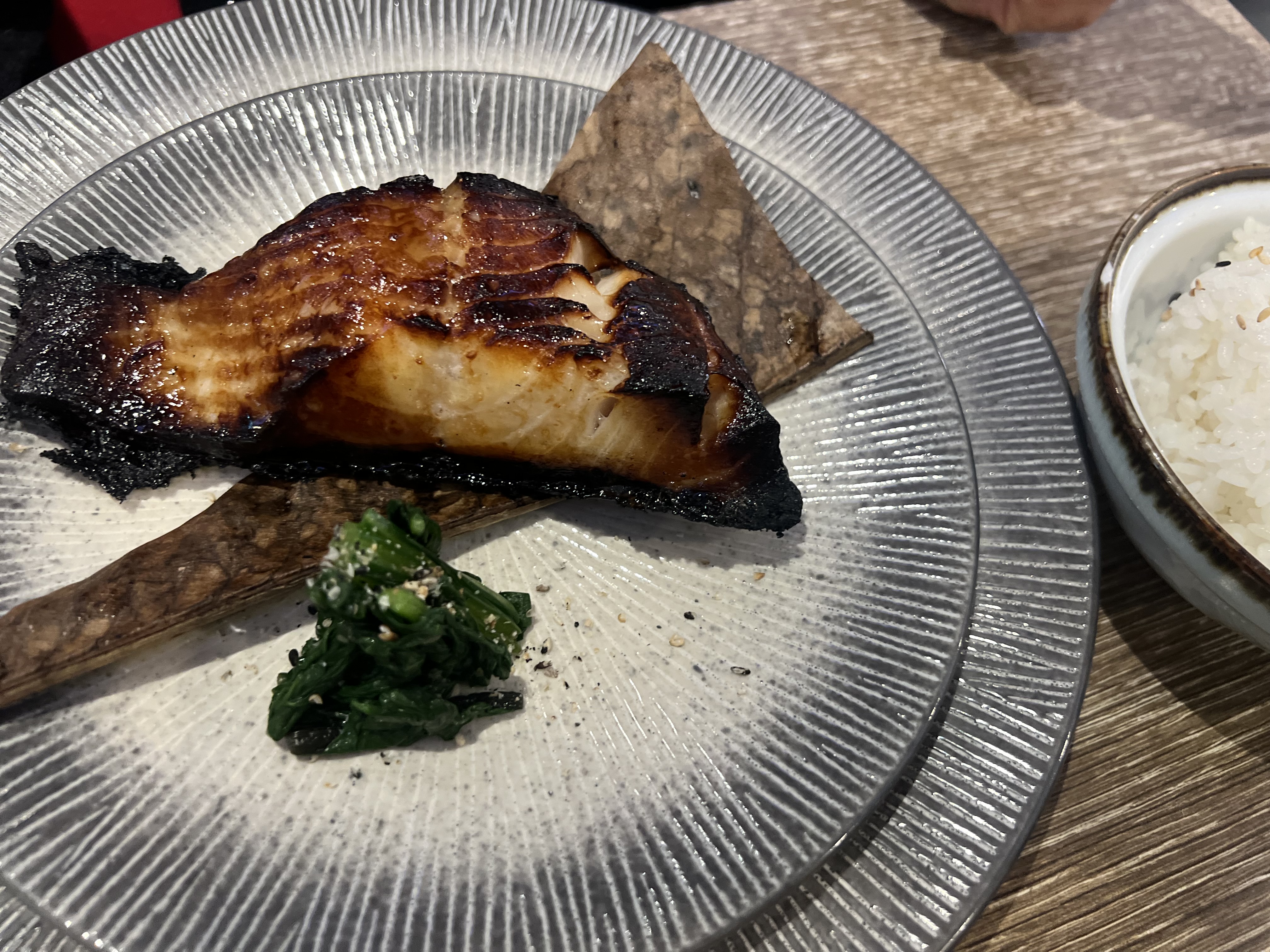 Je ne peux que commenter la composante cuisine japonaise qui était exceptionnelle. Poisson de la plus haute qualité, frais, délicat et sans défaut. La cerise sur le gâteau était du vrai wasabi fraîchement râpé qui était servi sur le nigiri d'anguille (unagi) mais que j'aurais de loin préféré servir également avec mon sashimi. Les prix sont élevés mais vous en avez pour votre argent et la morue noire était tout simplement trop délicieuse pour être décrite ! Je reviendrai certainement et j'espère une amuse-bouche et un service un peu plus fluide qui, avec une telle nourriture de type étoilé Michelin ainsi que des prix, auraient fait de l'expérience un 5/5 au lieu d'un 4/5.