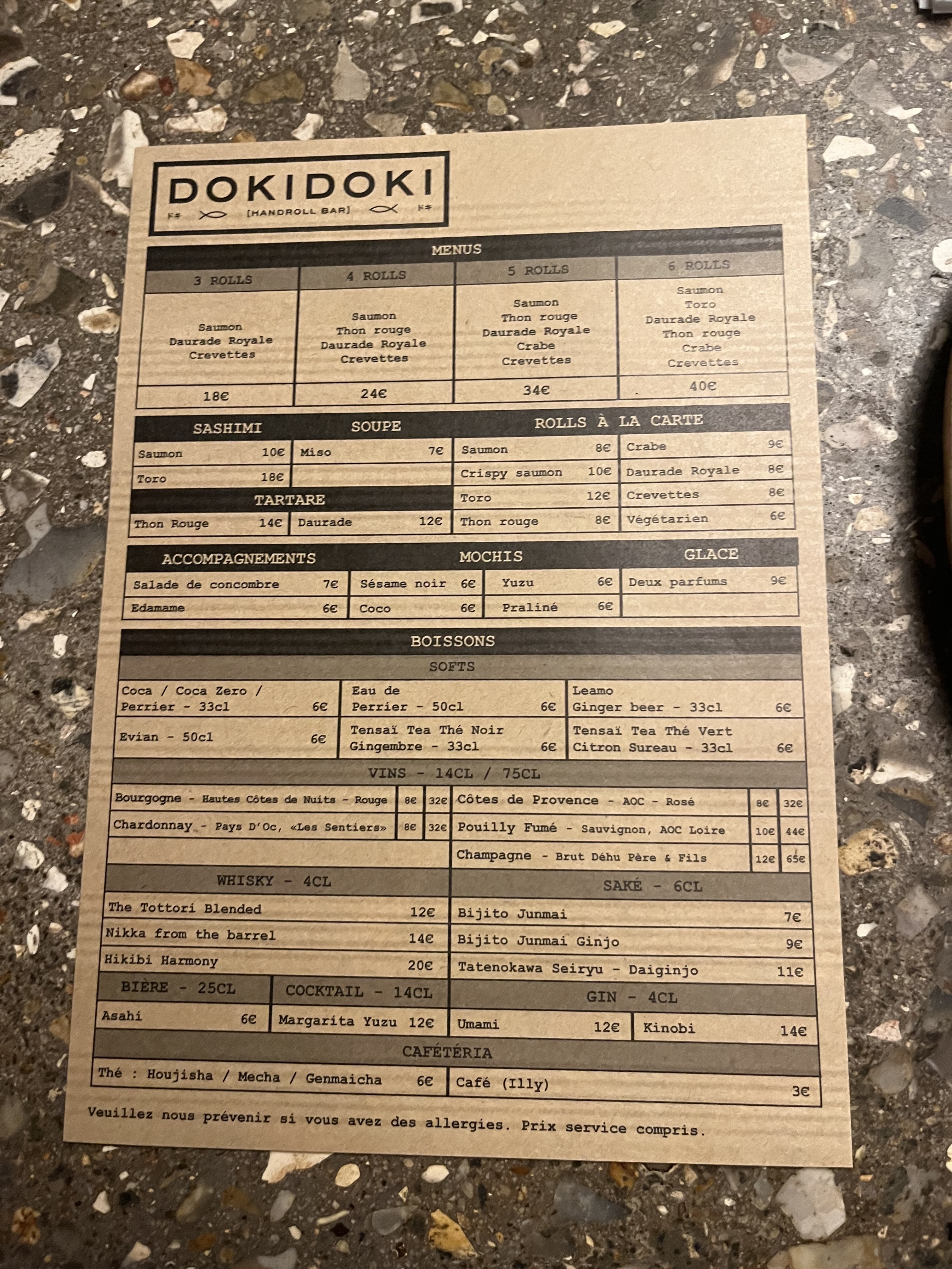 Toujours un délice ! Le handroll au crabe braisé (japonica) reste incontestablement le meilleur mais le thon et saumon sont également très savoureux. En revanche côté cadre, petite préférence pour le Dokidoki Louvre.