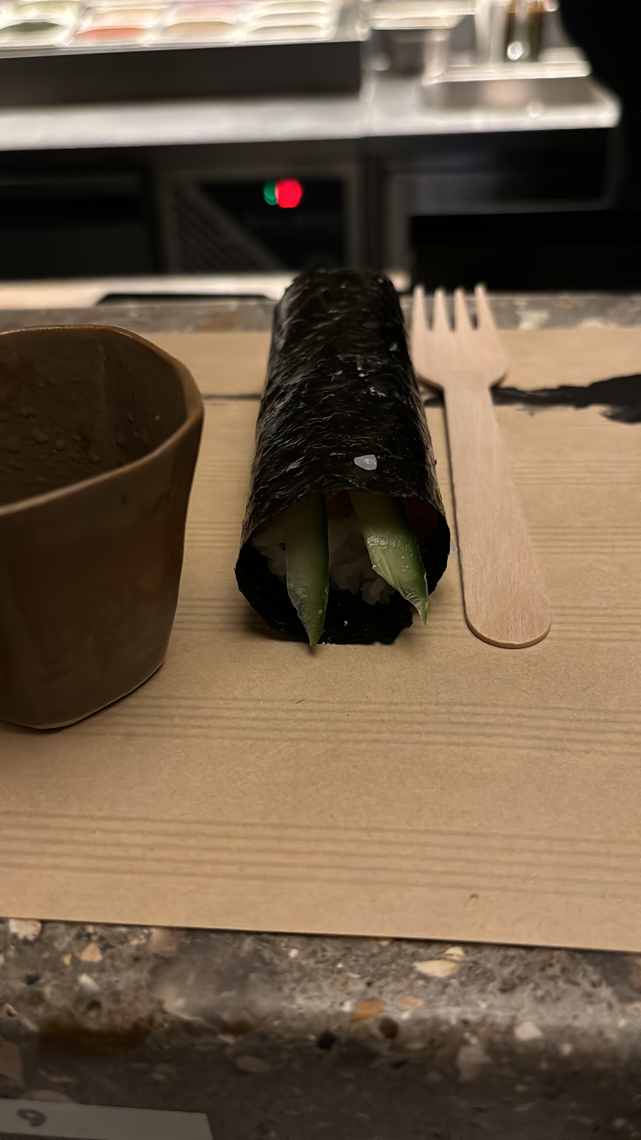 Barre de roulement décente. Le handroll n’a vraiment rien d’exceptionnel par rapport au prix qu’on y paie mais ce n’est pas très surprenant puisqu’il est proche des Champs-Élysées. La qualité est bonne mais je dirais que les petits pains manquent un peu de saveur. Une chose en particulier que nous n'aimions pas, c'est le fait qu'ils ne nous laissaient aucune pause entre chaque rouleau : j'étais interrompu au milieu d'une phrase par le chef me disant de me dépêcher de manger mon rouleau même si j'en mangeais encore un. Néanmoins le restaurant est beau et bien situé.