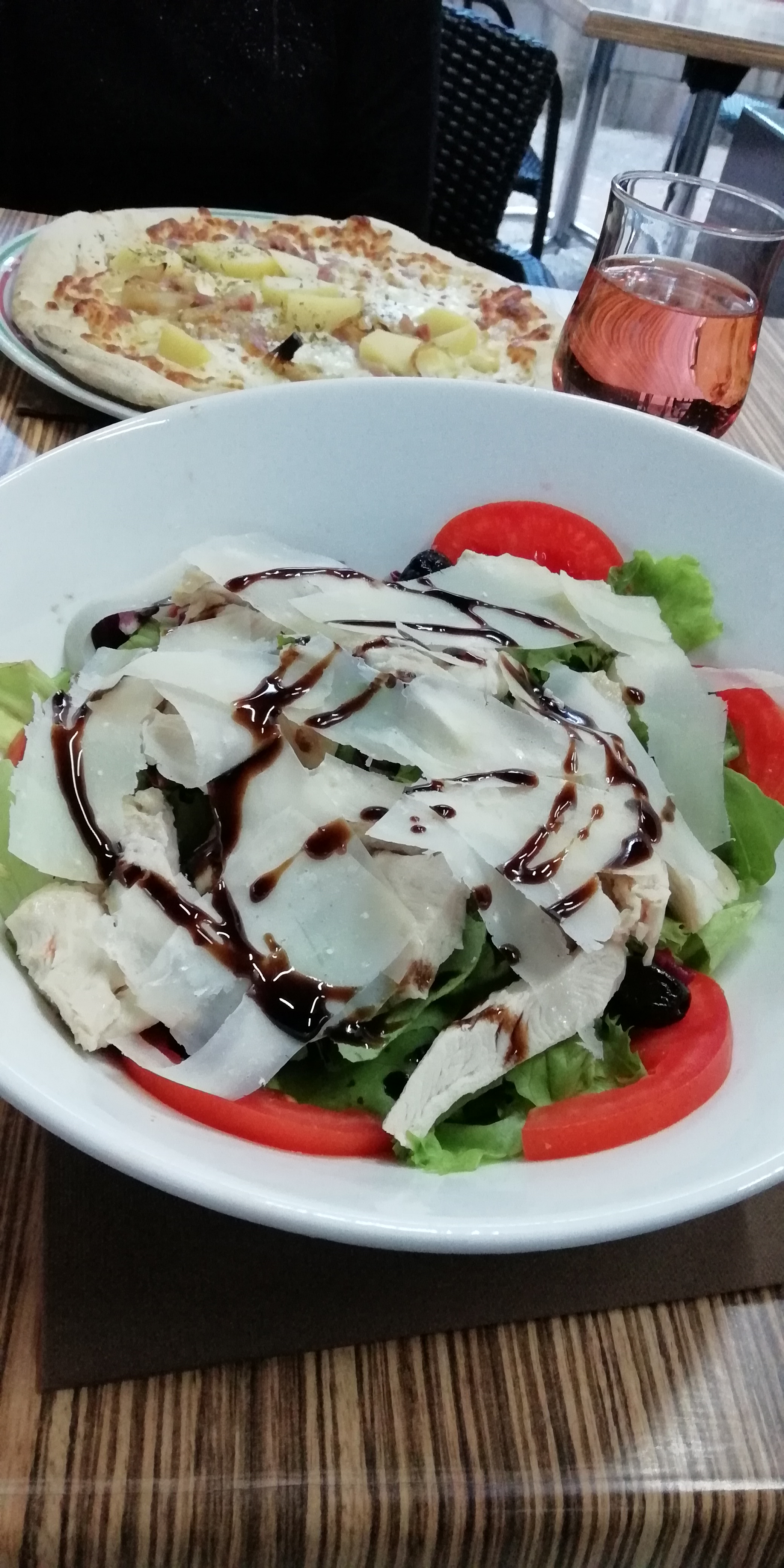 Bonne cuisine, généreuse comme on l'imagine en Italie. Beaucoup de choix, chacun y trouve son compte. Nous étions un groupe d'une vingtaine, tout le monde a été servi dans le même temps. Petits bémols, les couteaux ne coupent pas... les mangeurs de pizzas ont eu du mal à les couper, idem pour l'escalope de veau alors qu'elle était tendre sous les dents... la peau laissé sur le chorizo sur une pizza.... je recommande , rapport qualite/prix au top.