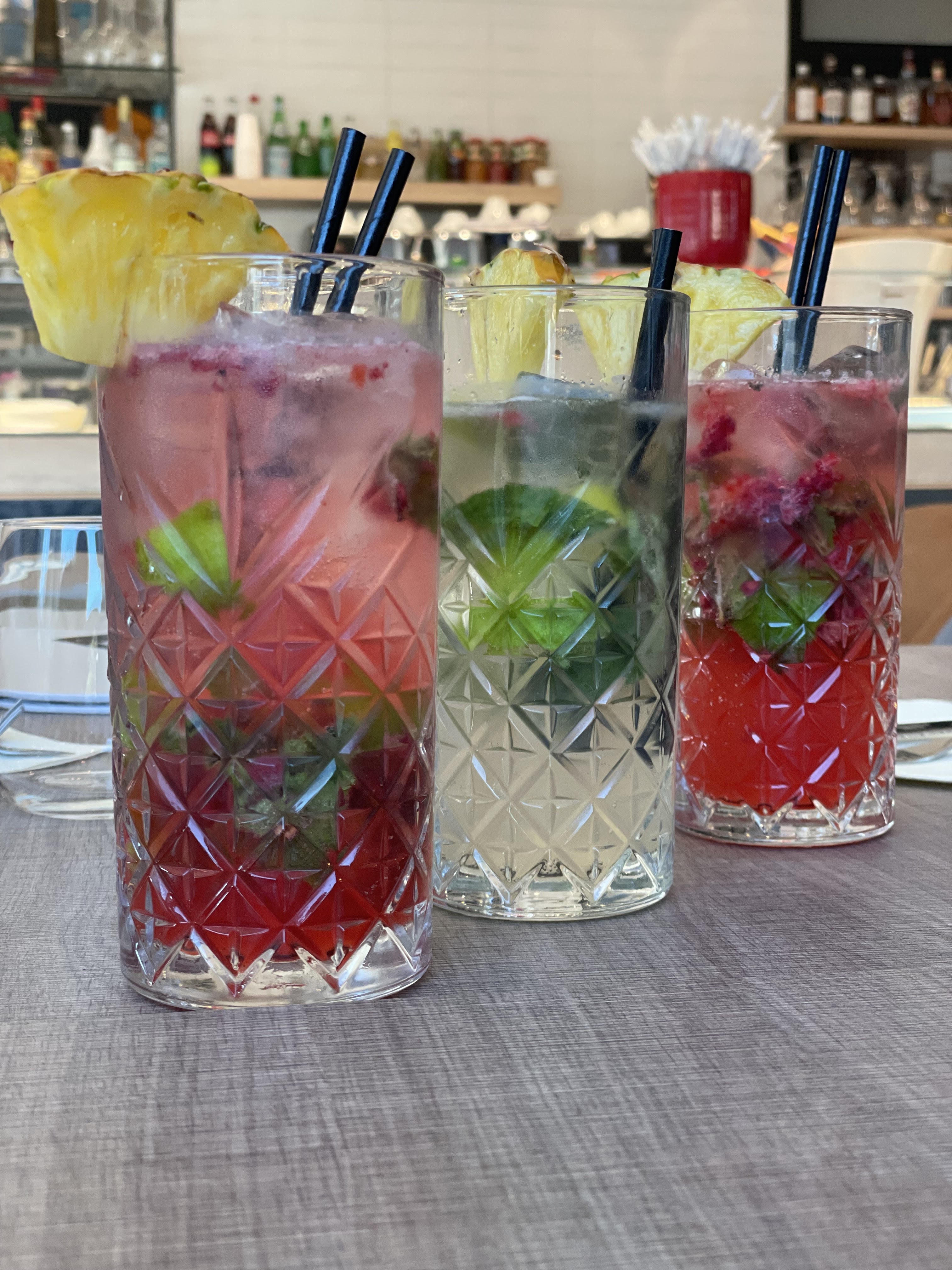 Très peu de menthe et de sucre dans le virgin mojito, Barman qui ne porte pas de masque et se présente à notre table pour débarrasser en faisant des réflexions sur les restes dans nos assiettes, du jamais vue...!! En revanche, pizza très bonne et serveuses agréable.