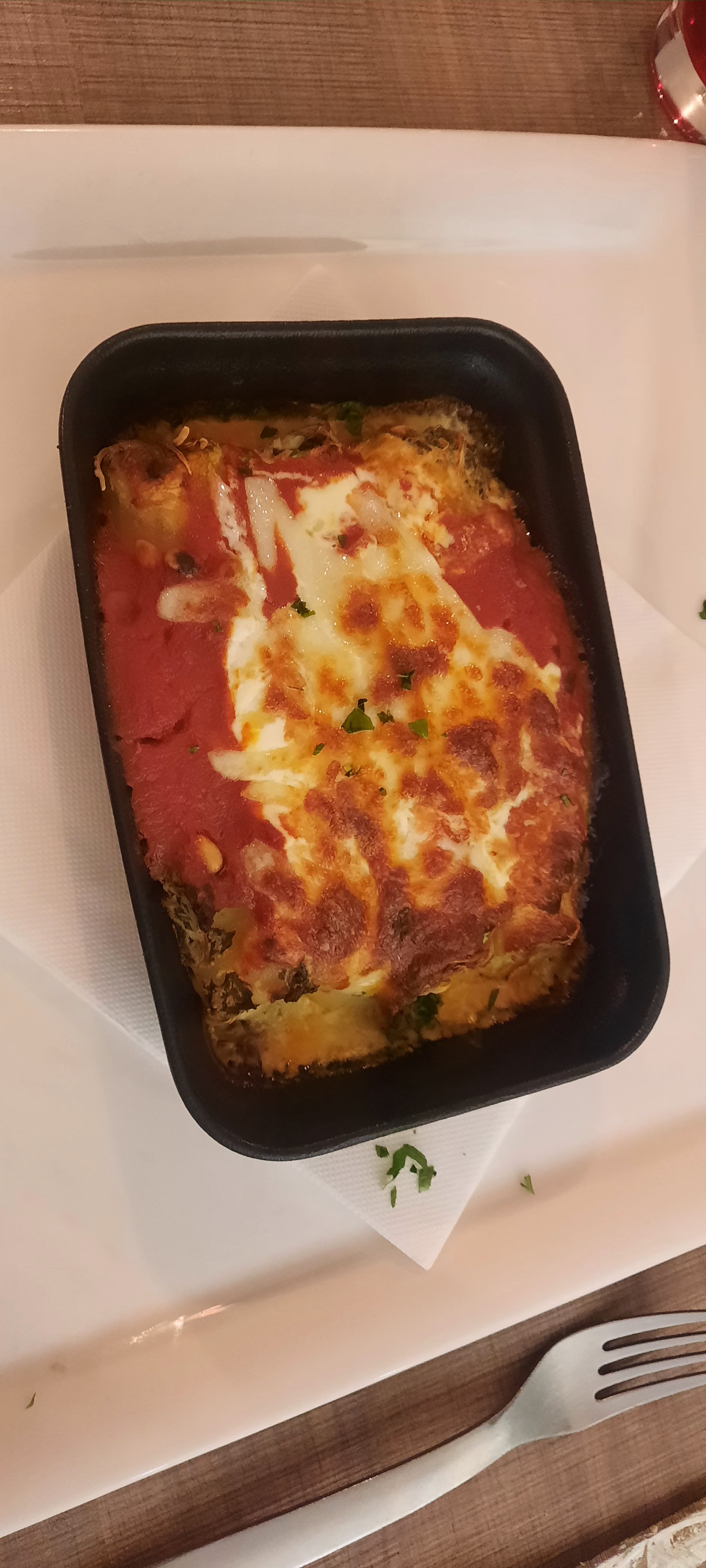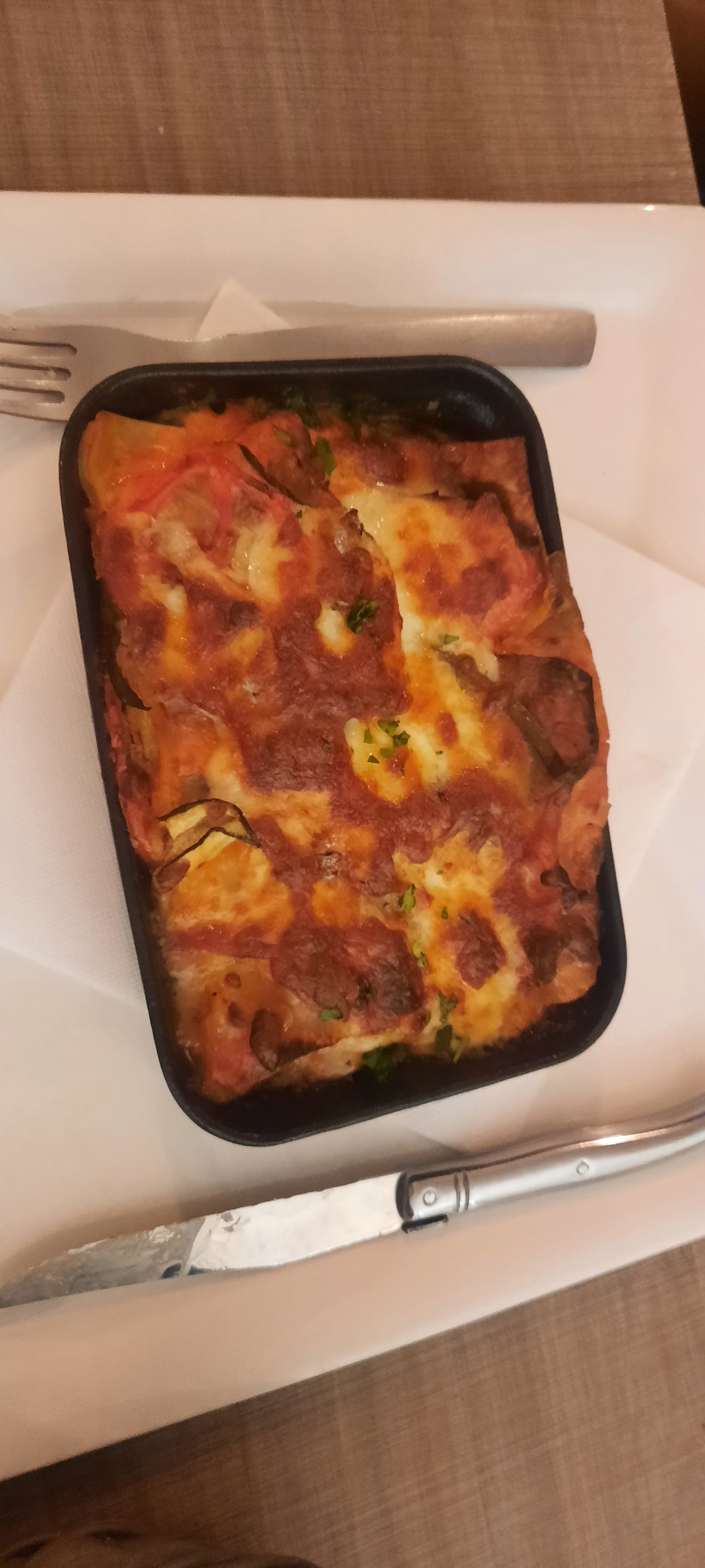 Pas dingue Pris en livraison via les appli traditionnelles Pizza plutôt bonne, lasagnes moyen Évitez les plateaux de charcuterie en emporter, ça a l'air bon mais avec la vinaigrette, toute la charcuterie prend l'huile.