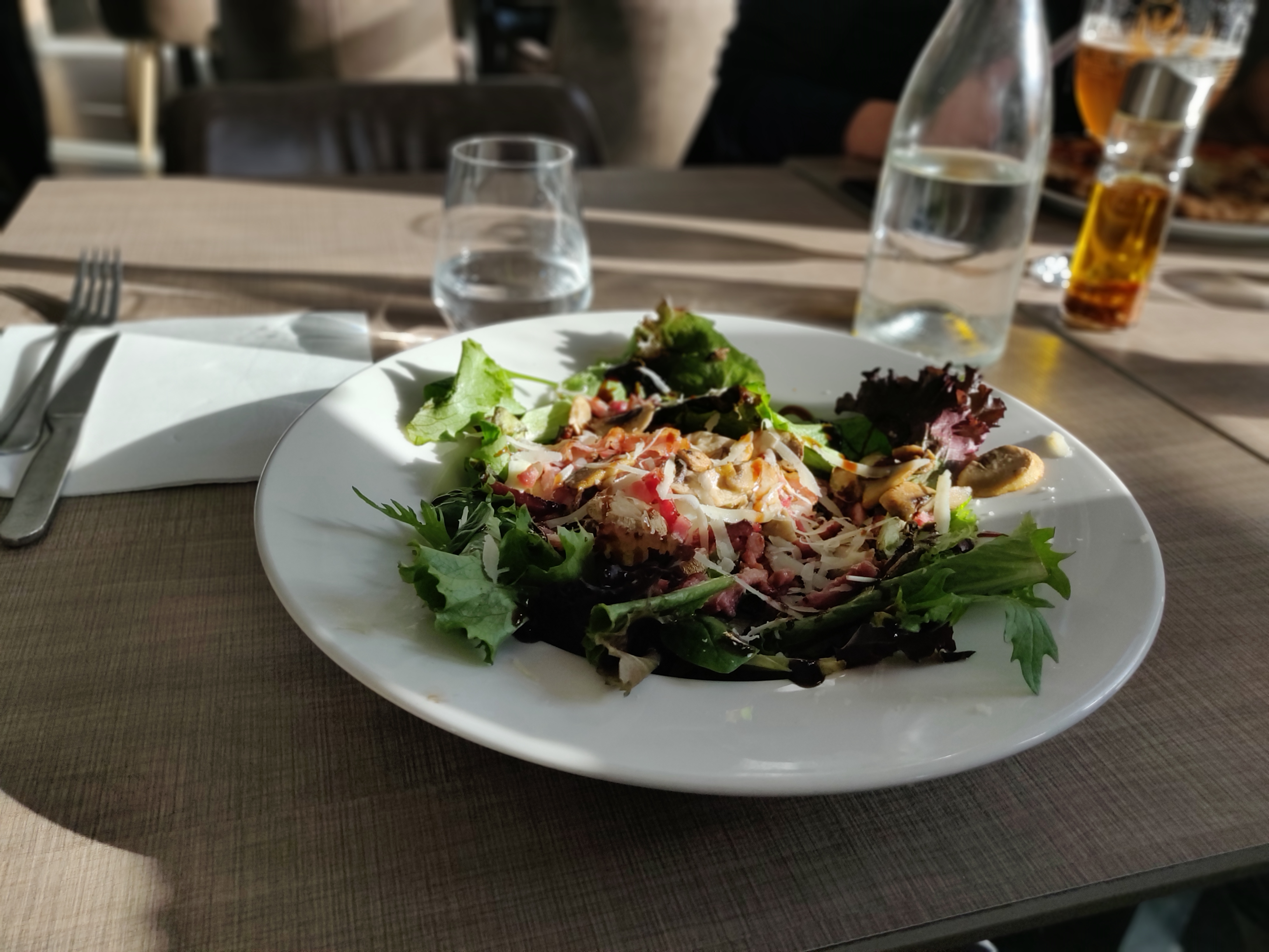 Le personnel est moyennement aimable, les prix sont très chers et la quantité très faible, assez déçu de ce restaurant ! Exemple cette salade à 12€50 ne contient que quelques feuilles de salade avec un petit peu de lardons, des petits bouts de champignon et du parmesan. Sans crouton ni pain ce n'est pas du tout consistant !