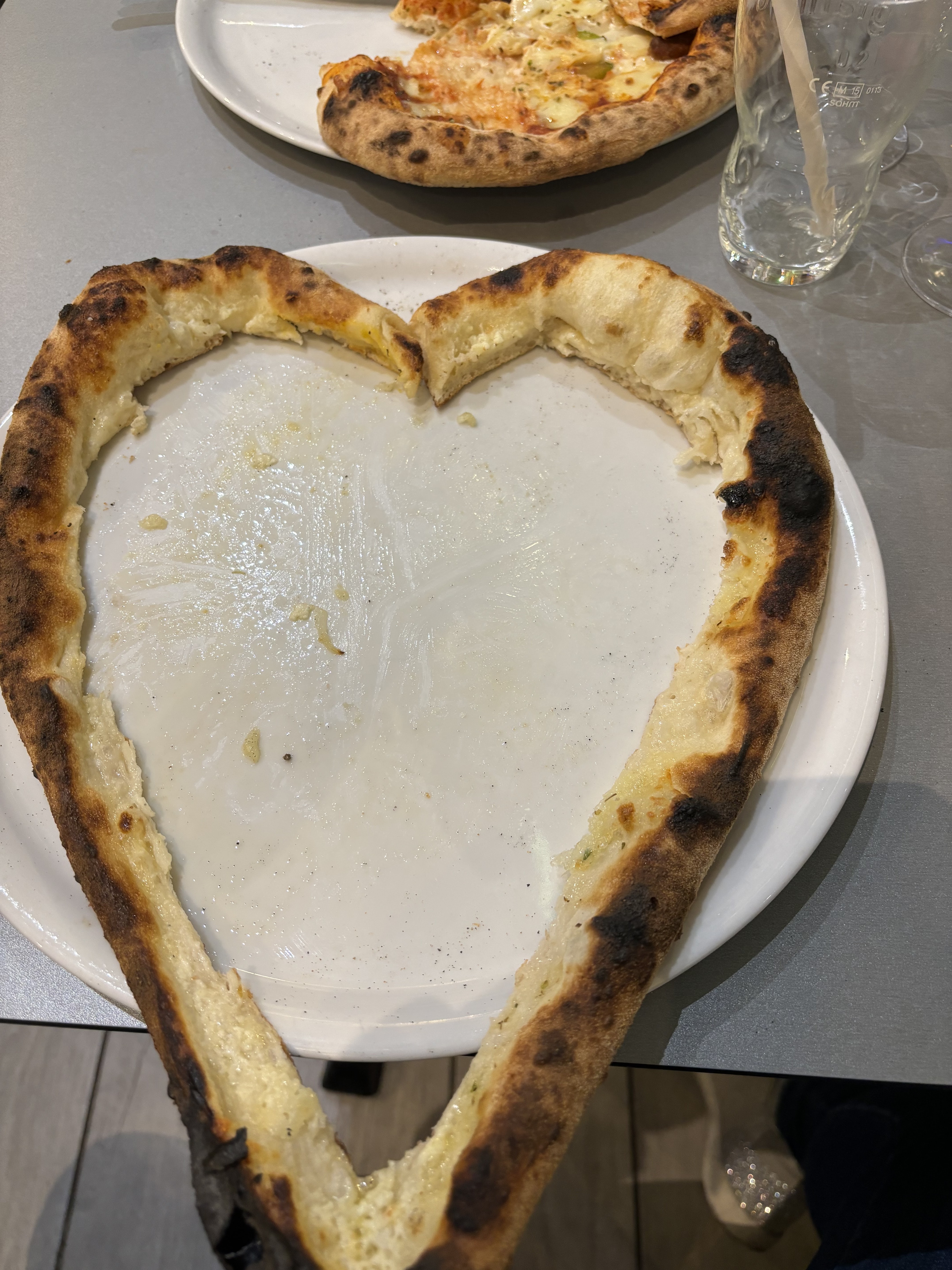 Si vous êtes allemand à Paris, vous allez bien sûr manger dans un restaurant italien.😊 Si ce restaurant était dans ma ville, ce serait mon restaurant italien préféré. Cela faisait longtemps que je n'avais pas mangé de pizza aussi bonne ! Et ce n'était pas à cause de la forme du cœur. De la pâte à la garniture, tout était parfait. Nos souhaits ont été exaucés sans exception et nous n'avons pas eu à attendre longtemps pour notre nourriture. Les vœux des enfants ont également été exaucés et à la fin, ils ont eu des bonbons et un limoncello pour les adultes. Côté ambiance : ce n'est pas un restaurant italien chic, mais un restaurant de rue typiquement parisien. Mais comme cela se voit clairement quand on se tient devant, nous ne nous attendions à rien de plus, donc tout était super. Ciao chère équipe, ce fut une soirée merveilleuse et très savoureuse.