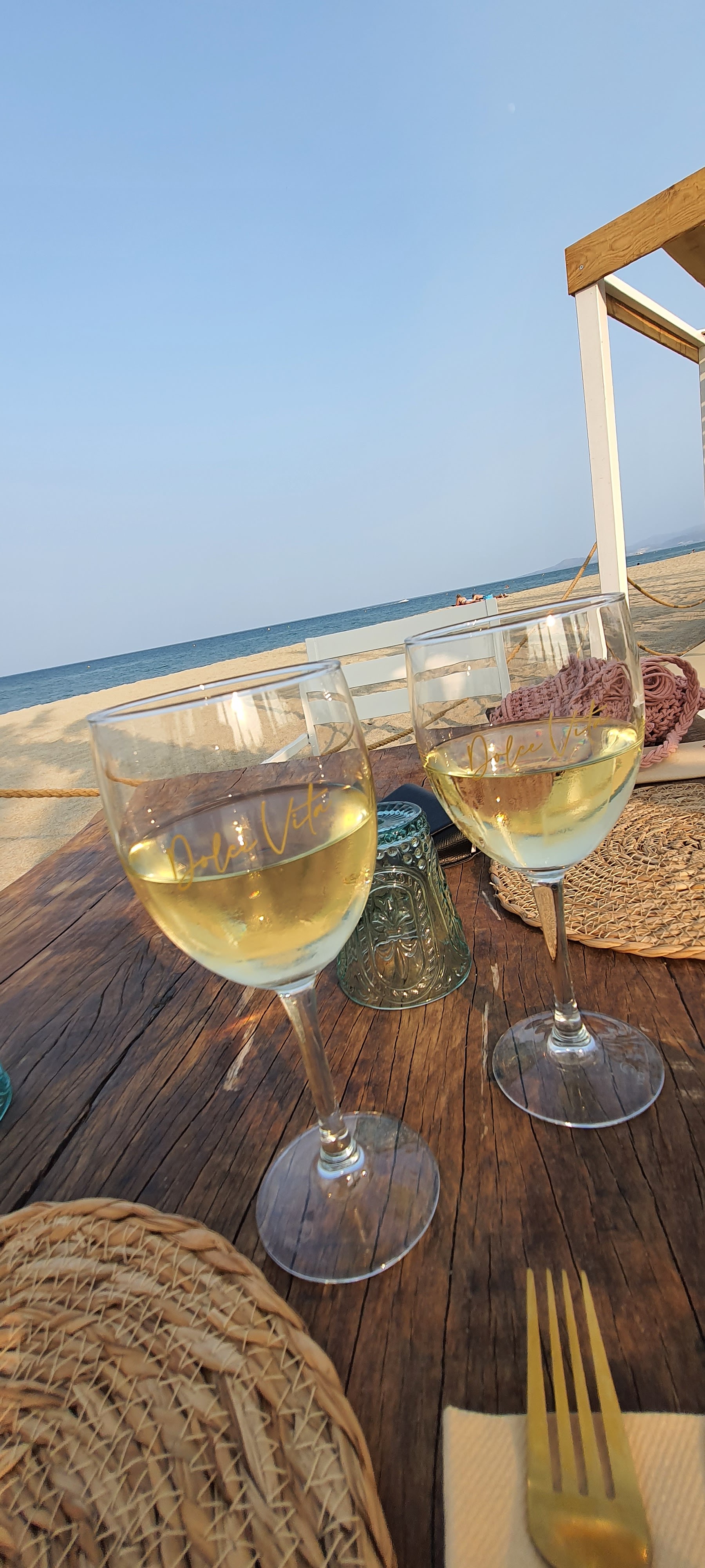Le cadre est splendide et la déco top. Le service sympathique et souriant mais sûrement pas du métier. On est indulgent sur ce point car on sait combien il est compliqué de trouver du personnel de restauration actuellement. Sacrilège : Verre de l’apéritif embarqué bien que non terminé. Surtout vu le prix tu le dégustes jusqu’à la dernière goutte. Bonne note : Plats très bons avec du goût. Conseil : 1 encornet de plus avec le risotto aurait été apprécié. Pas de pain ni de carafe d’eau sur la table. Il faut réclamer et en guise de pain quelques morceaux de foccacia. Un peu cher mais il parait que se sont les prix pratiqués par les Clubs de plage.