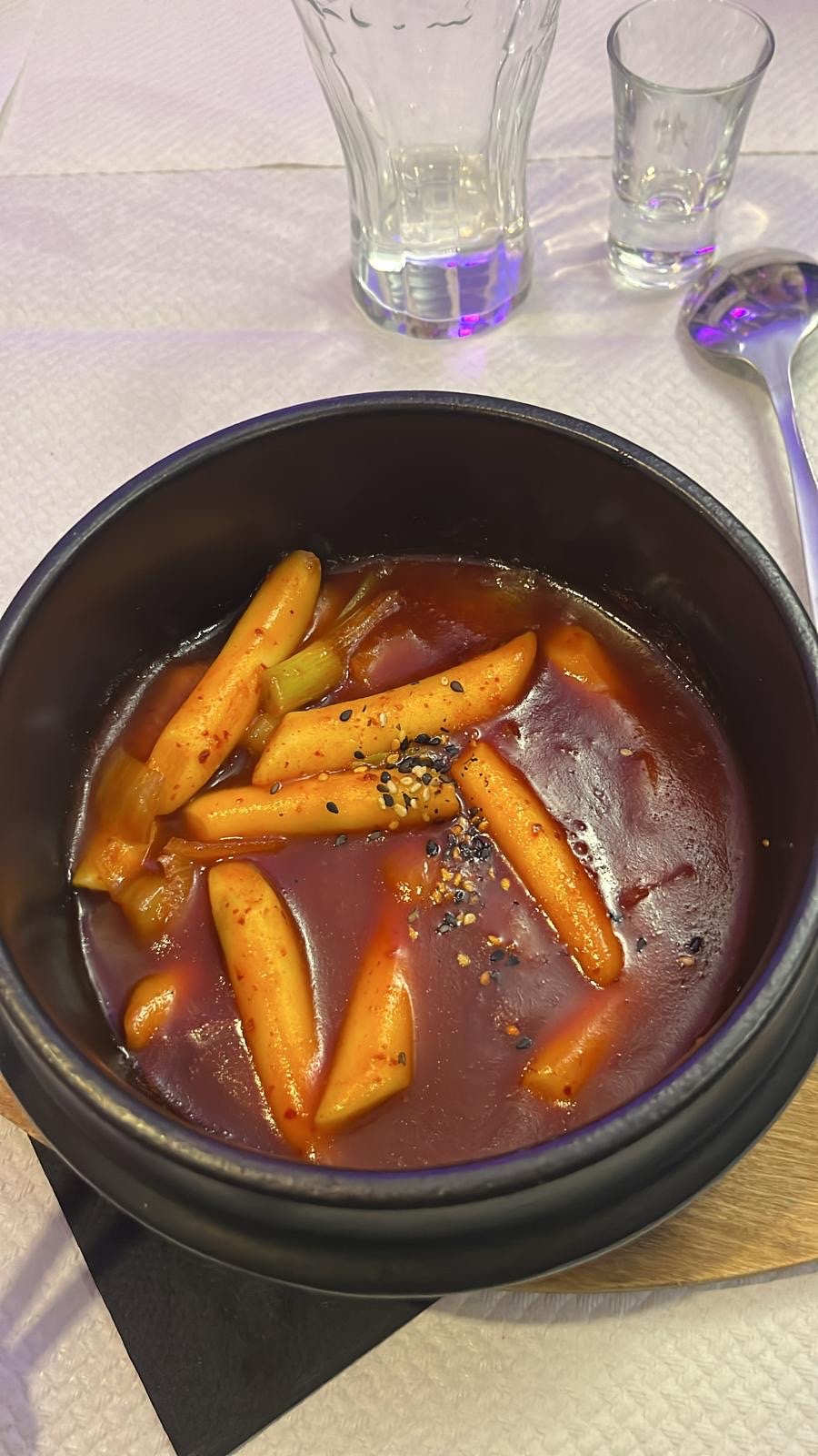 Les + : service sympathique, plats arrivés en même temps malgré le grand groupe (9 personnes), le calme, le rapport qualité prix, la super sauce des Tteokbokki, le poulet croustillant Les - : le banchan était un peu fade (kimchi pas assez épicé, courgettes un peu trop “huileuses” et radis pas assez vinaigré à notre goût), le riz était un peu trop pâteux La déco pourrait rendre le lieux un peu plus chaleureux De manière générale nous étions quand même satisfaits et reviendrons probablement :)