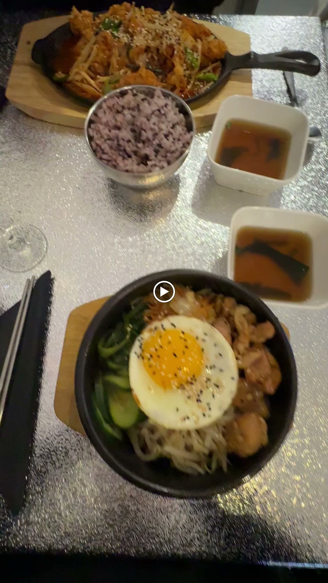 Il est difficile de formuler un avis sur cette soirée. Bien que les intentions étaient louables, la maîtrise laisse à désirer. Le service est empreint de bonnes intentions, mais souffre d'un manque crucial d'expérience qui, espérons-le, s'améliorera avec le temps et la formation. La cuisine semble être préparée avec amour par le chef, mais quelque chose semble manquer. Le bibimbap était correctement exécuté mais manquait de saveur distincte. L'ambiance et la décoration ont besoin d'améliorations, avec quelques inspirations mais sans réellement transporter les convives. Malheureusement, pendant le plat, j'ai ressenti des morceaux croquants désagréables, provenant du fond du plat du bibimbap qui s'était fissuré. ( Pas de chance ) Peut-être devriez-vous envisager des bols en pierre plus résistants. Le chef a su réagir avec professionnalisme et a fait un geste commercial appréciable. Je vous encourage à persévérer, car vous avez le potentiel nécessaire pour réussir. Bien que l'expérience soit encore en construction, il est important de rappeler que la perfection ne se réalise pas en un jour.