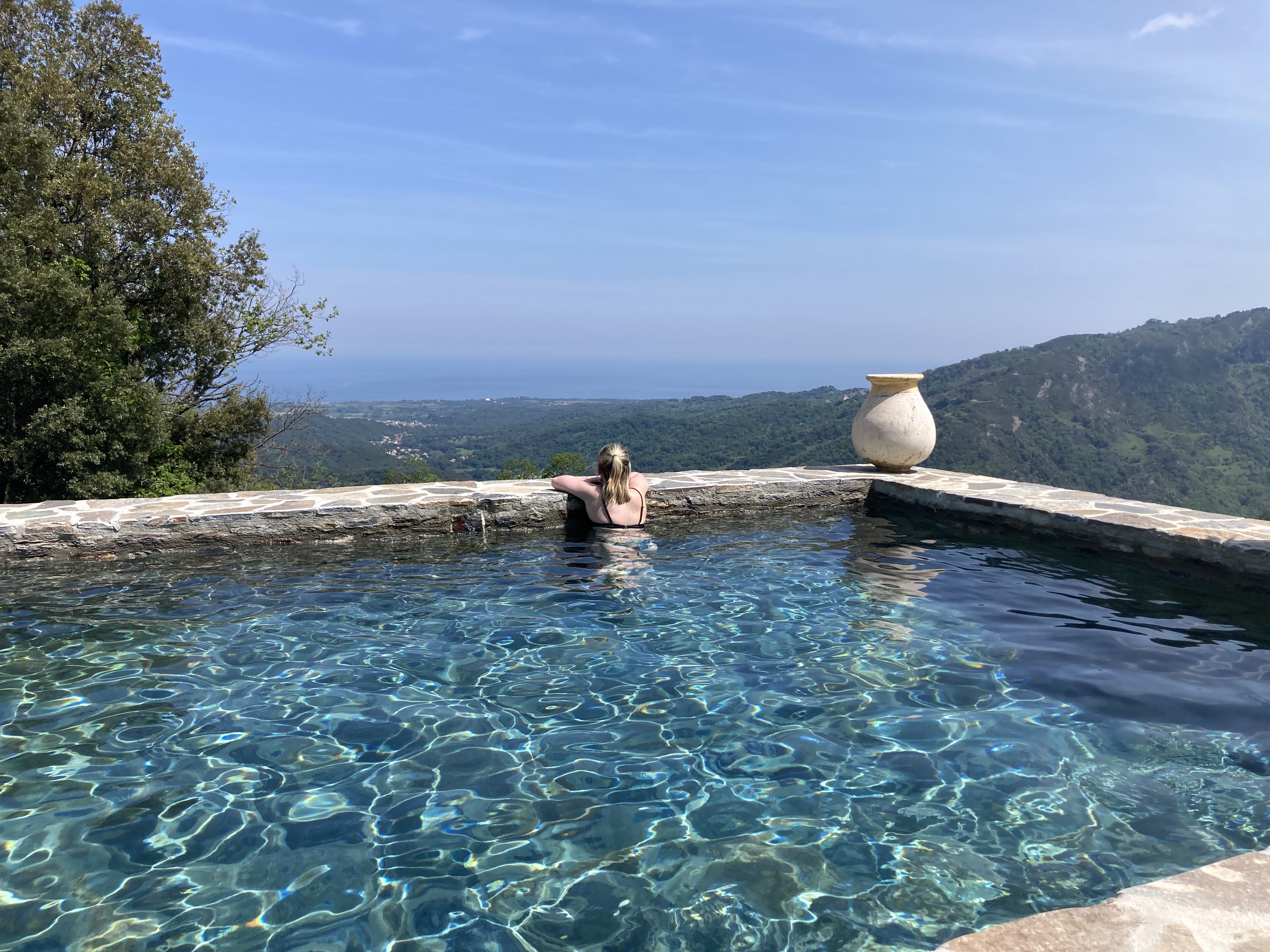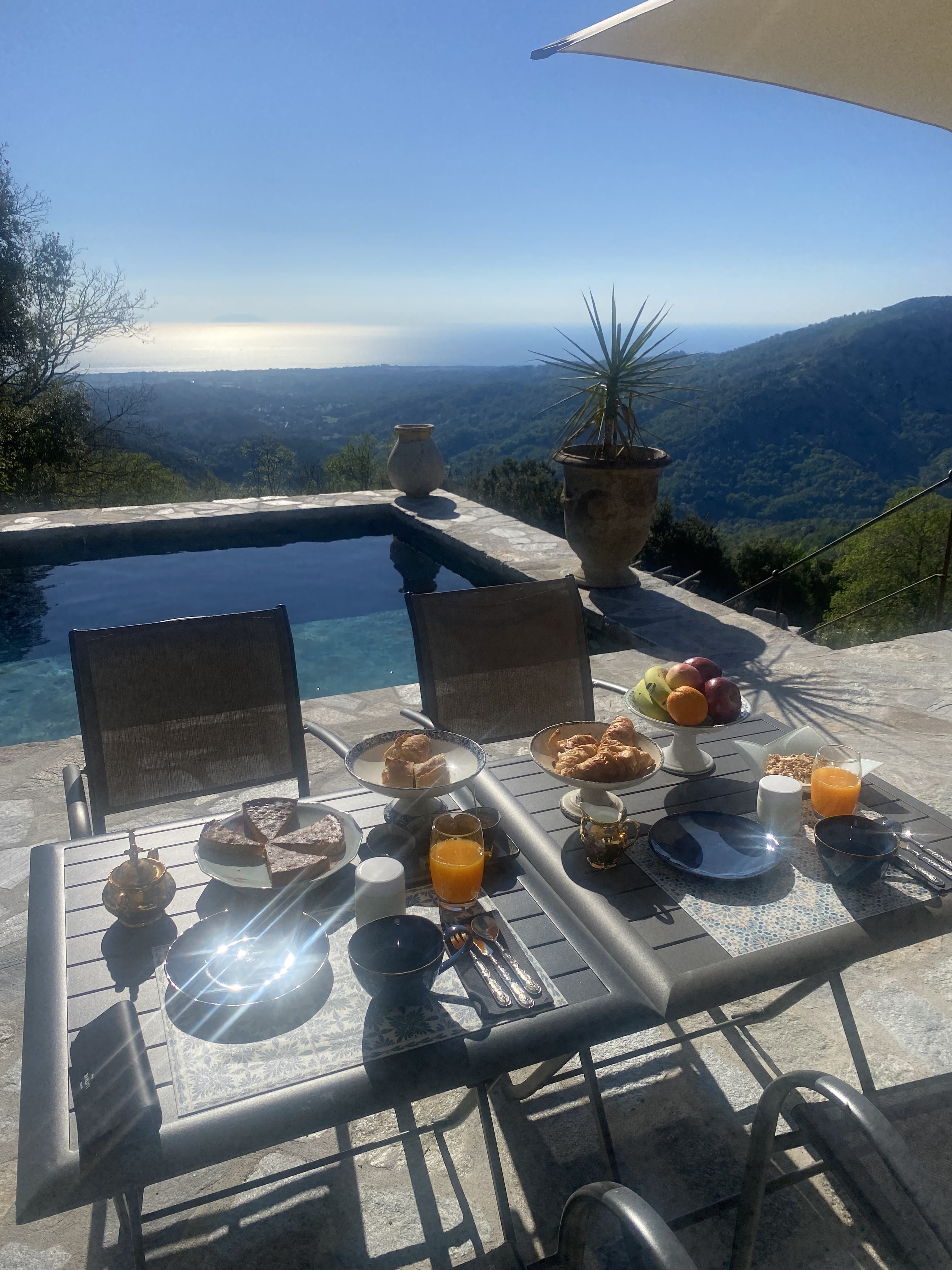 Le domaine Colonna-Santini, un endroit retiré mais pas isolé. Le calme, la vue, la végétation, la montagne, la mer, le Montecristo (ou pas), la piscine, le spa… quelle somme de travail pour nous offrir un tel confort ! Nous avons passé un séjour inoubliable. Une ambiance familiale : Eric et Jérôme ont été aux petits soins avec nous. De jolies rencontres avec les gens du village au restaurant du domaine : La table de Querciu. Nous avons eu la chance de déguster l’excellente cuisine d’Éric, la galette bretonne de Jérôme et le meilleur fiadone de l’île (celui de Maleine, évidemment). Sans oublier l’affectueuse Jessy, la petite chienne du domaine, qui venait régulièrement nous tenir compagnie sur la terrasse du gîte. Merci pour cet excellent séjour 🙏🏻