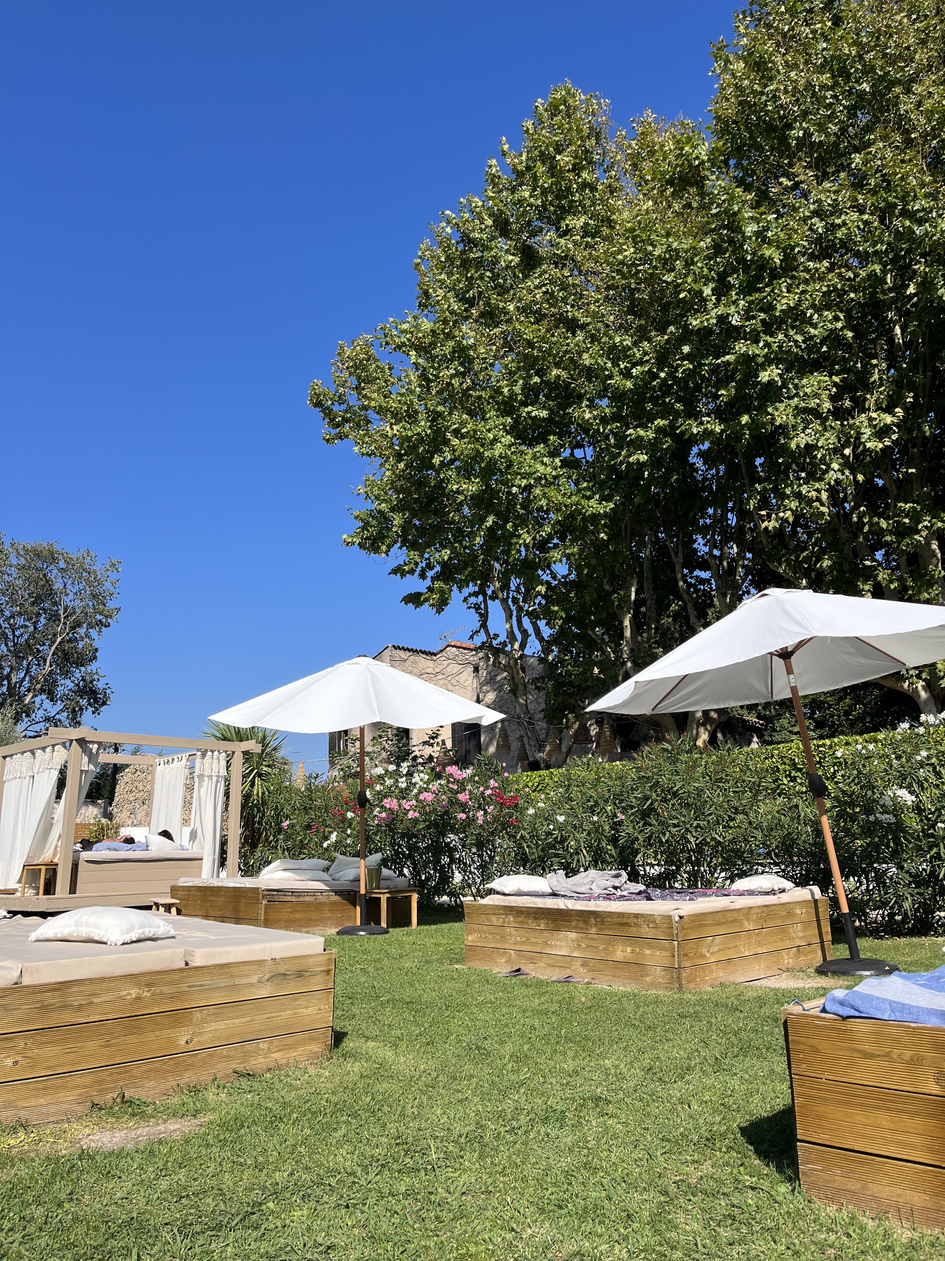 Un endroit vraiment agréable rythmé par le chant des cigales… Nous avons testé le coin piscine plusieurs fois et ce fut un très bon moment à chaque fois. Le personnel est très gentil, aux petits soins, souriant et réactif. Les boissons et les snackings du coin piscine sont très bons, de même que les plats servis au restaurant : moment chill au top ! Nous avons hate de venir un samedi soir pour découvrir l’ambiance dont le domaine a visiblement le secret… !!! Bref, je recommande cet endroit quoi :)