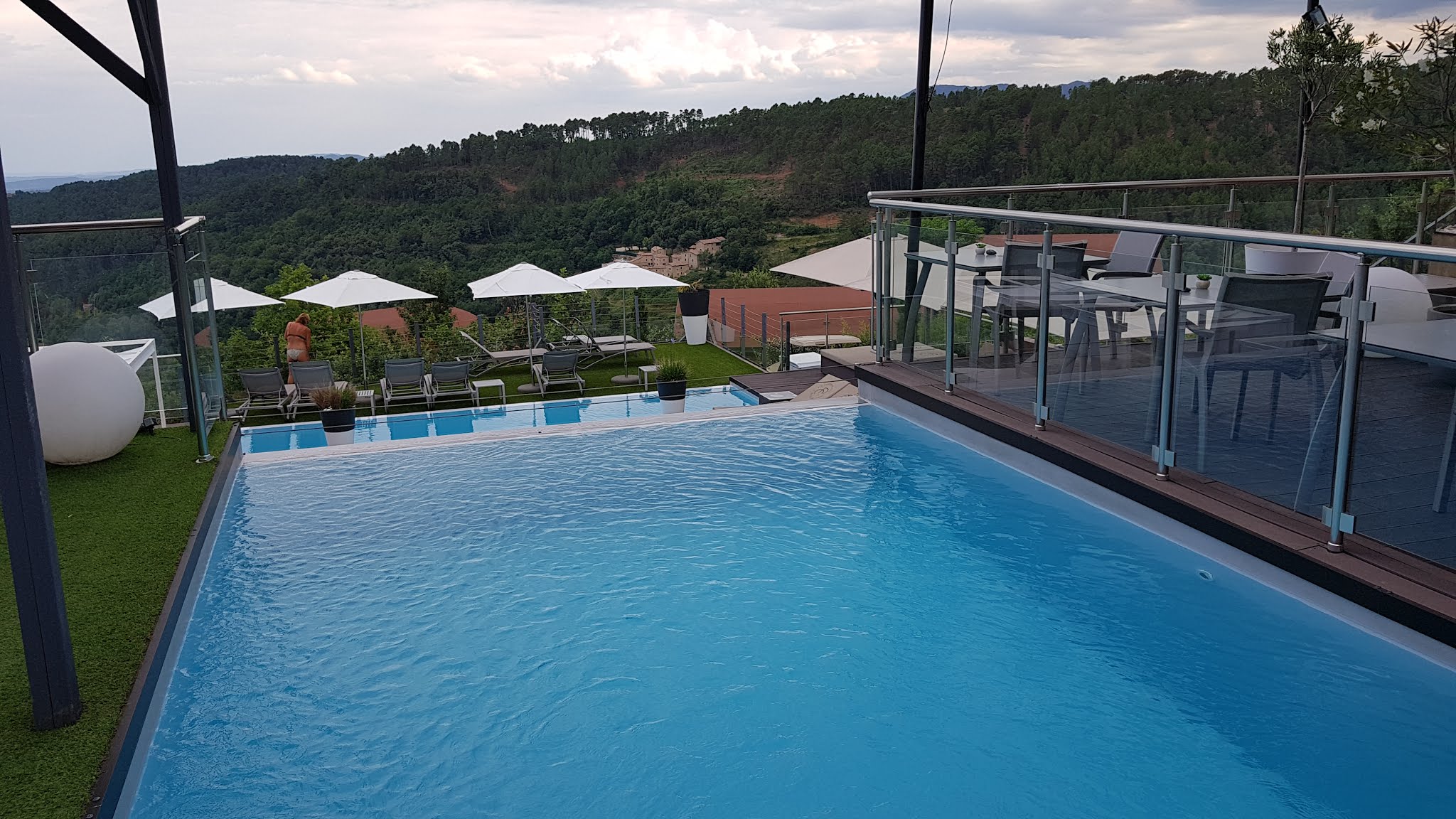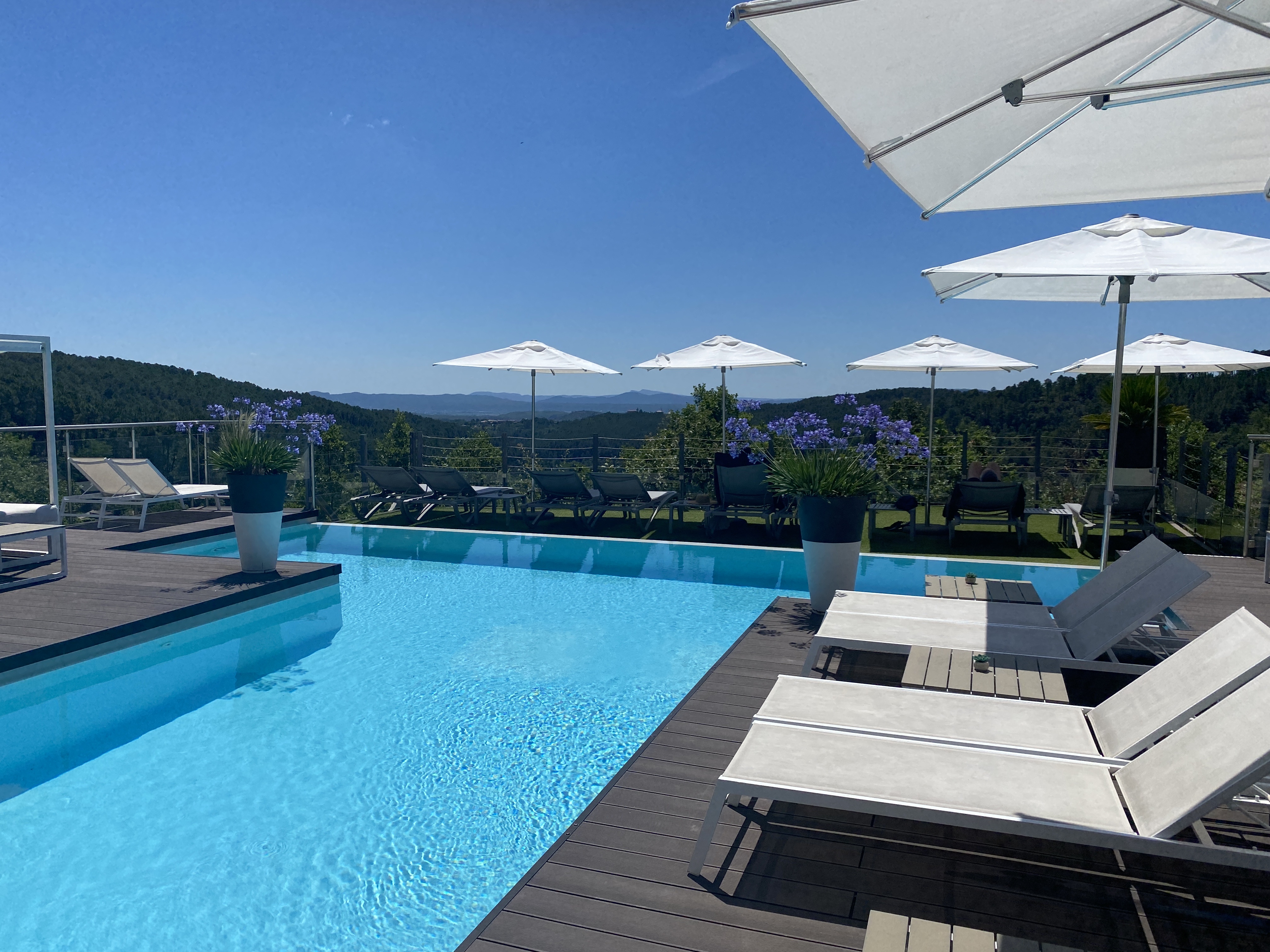 Magnifique domaine avec une vue sur les monts d Ardèche .piscine chauffée très agréable .avec multiples chaises et lit autour .la chambre très spacieuse et bien équipée literie très confortable .personnel accueillant .