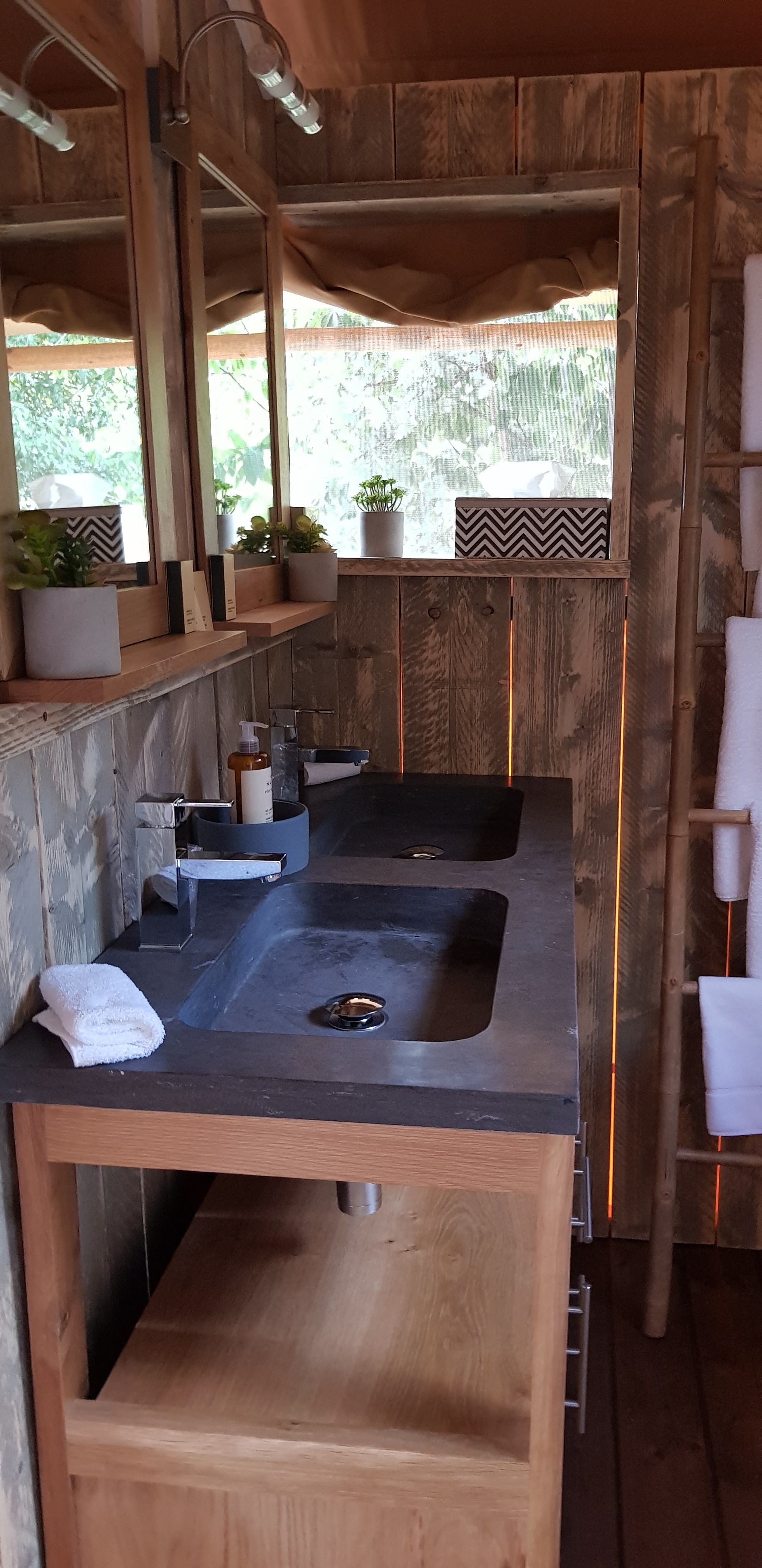 Du bon et du moins bon... nous ne sommes pas dans le niveau de confort et le luxe annoncé... Et facturé ! Nous avons aimé la situation géographique, la vue, les parties communes, les services, la gentillesse et l'efficacité du personnel, la taille et la déco de la chambre (tente) ... Mais pour un établissement 4* et de ce niveau de prix nous avons été déçus : - Si le concept tente est sympa, y vivre est plus compliqué surtout la 17. Très exposée et la plus excentrée, en cas de forte chaleur il y fait vraiment très chaud yc tard dans la nuit, tout ouvert. En cas de vents, les parois claquent. Les voisins sont bruyants jusque tard ! - le fort dénivelé de la propriété rend les A/R pénibles avec le resto et la piscine. Ce n'est vraiment pas confort, surtout avec une cheville fragile, le risque de glissade est élevé si on a pas de bonnes semelles. - a la piscine, les matelas tachés ne font pas propre. - 2 luminaires hs dans la chambre, la paroi de douche et le support de douche mal fixés. Cette somme de détails fait un séjour moyen et surtout pas à la hauteur de ce qui est annoncé