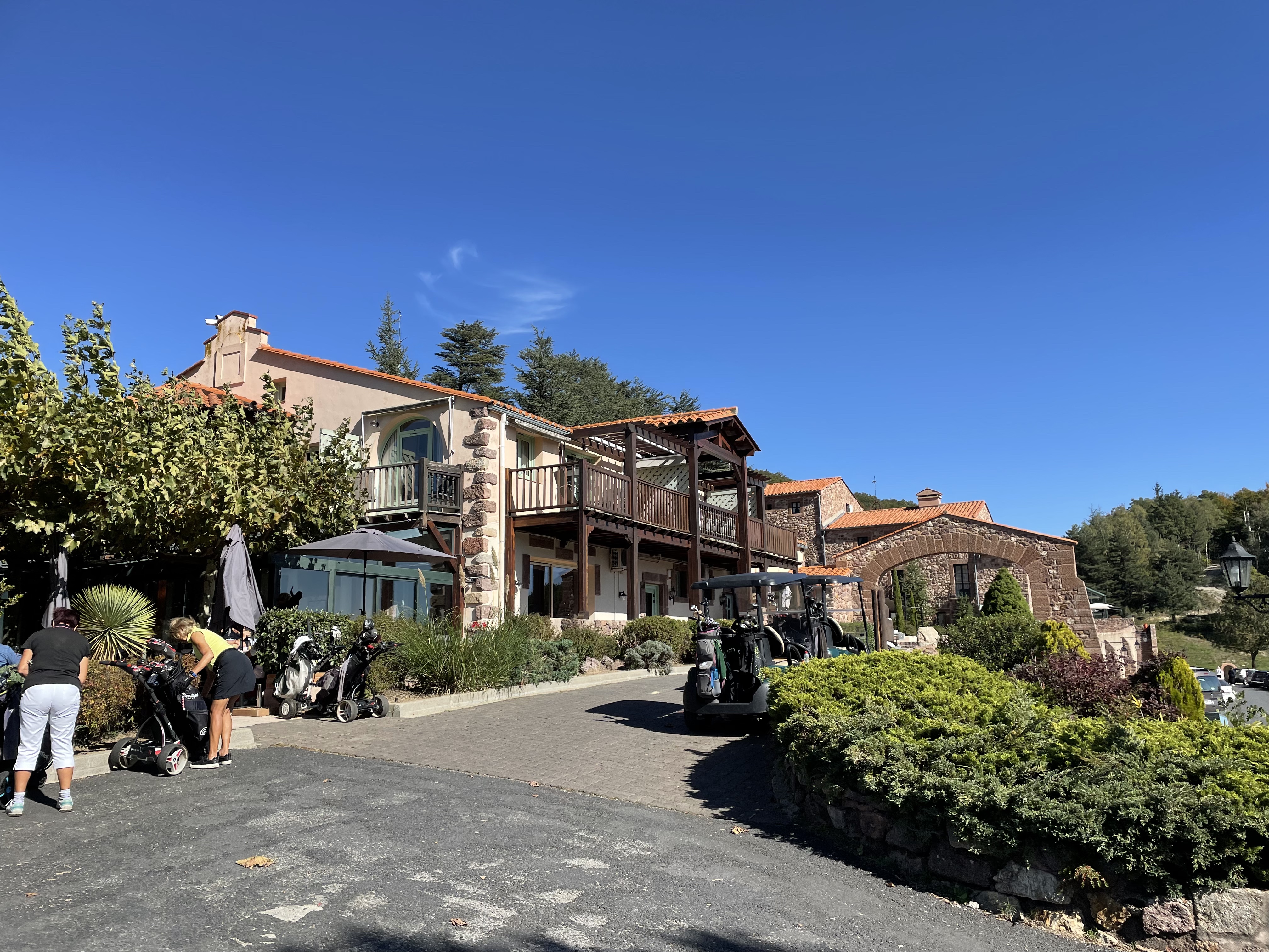 Un lieu magique dans la montagne avec vue sur le Canigou et au loin la baie de Rosa en Espagne. Des personnes sympa que ce soit à l'accueil comme au restaurant. Le parcours est toujours aussi exigeant avec des gens particulièrement rapides en ce moment. Pensez à prendre des balles pour les non professionnels. Régalez vous et n'oubliez pas la piscine et le spa. Ha oui les chiens sont acceptés.
