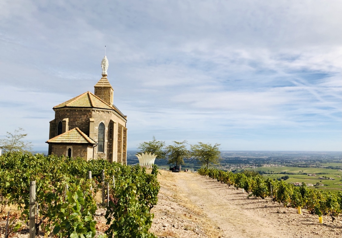 Jolie ballade au milieu des vignes pour atteindre la madone et avoir une vue magnifique sur le beaujolais et le beau village de Fleurie.