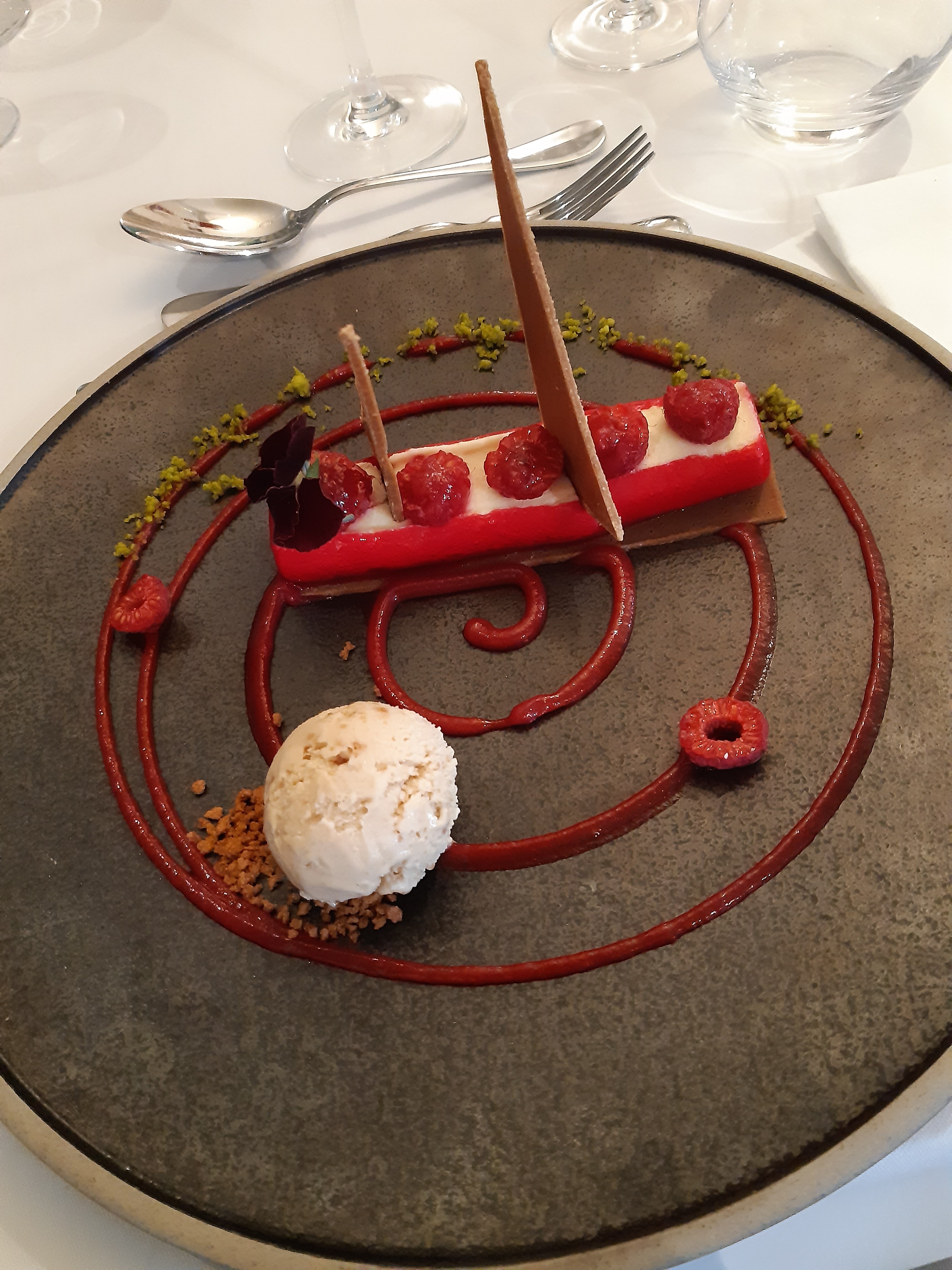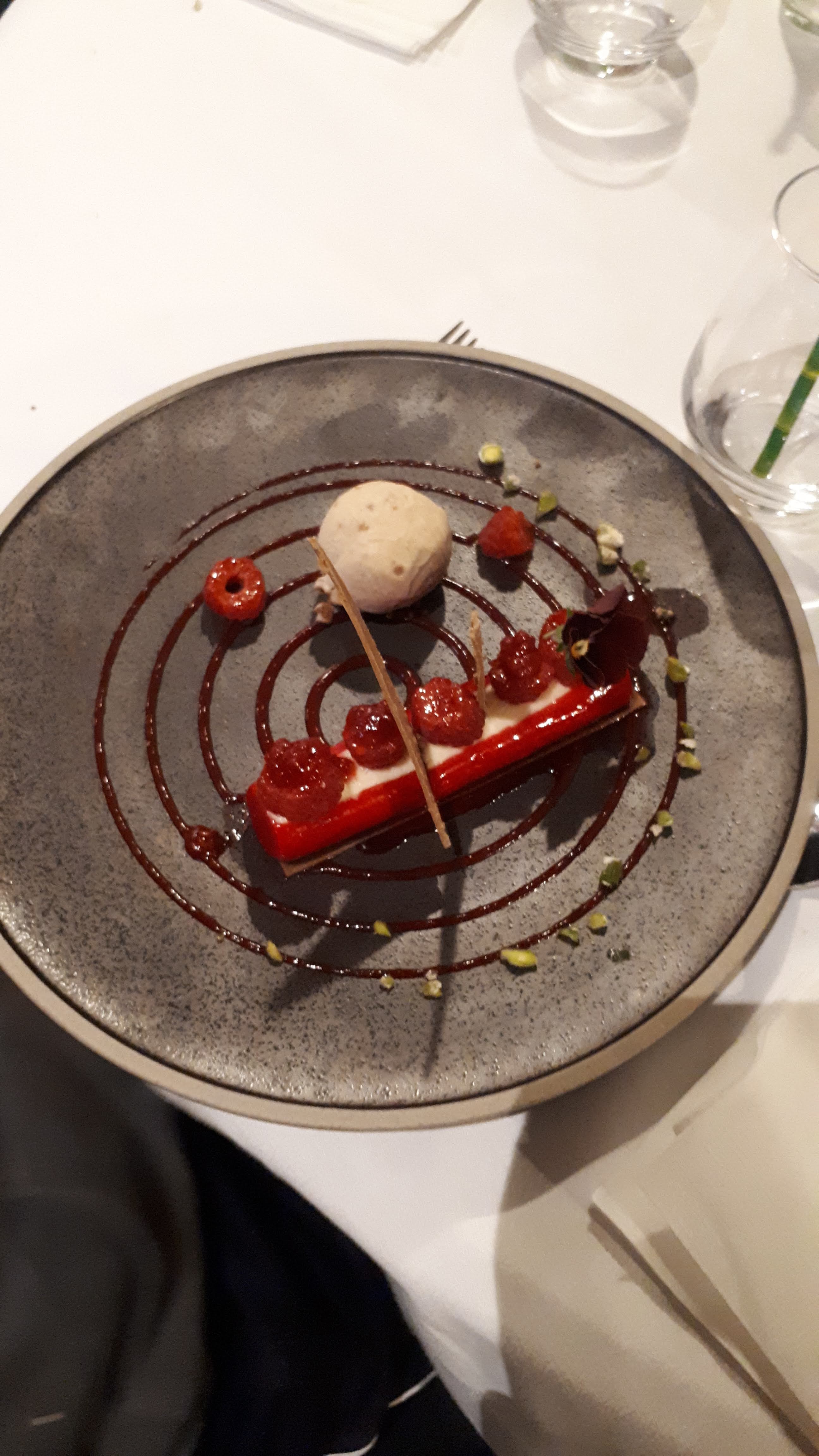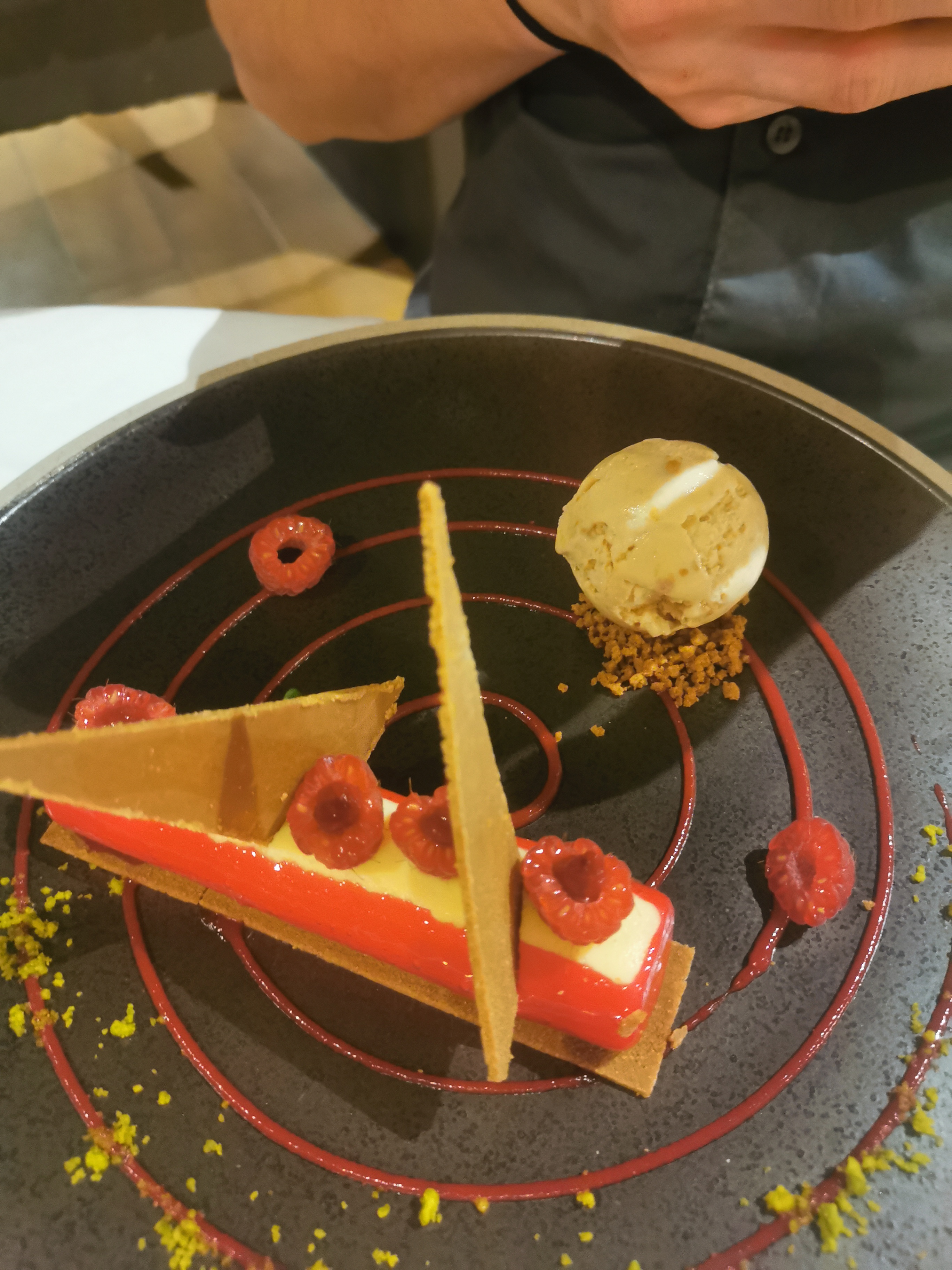 Toujours un régal jamais déçu . Des associations poisson et fraise de veau nous avons adoré, le gâteau figer chocolat mangue mousse cacahuètes j’en aurais bien mangé un peu plus