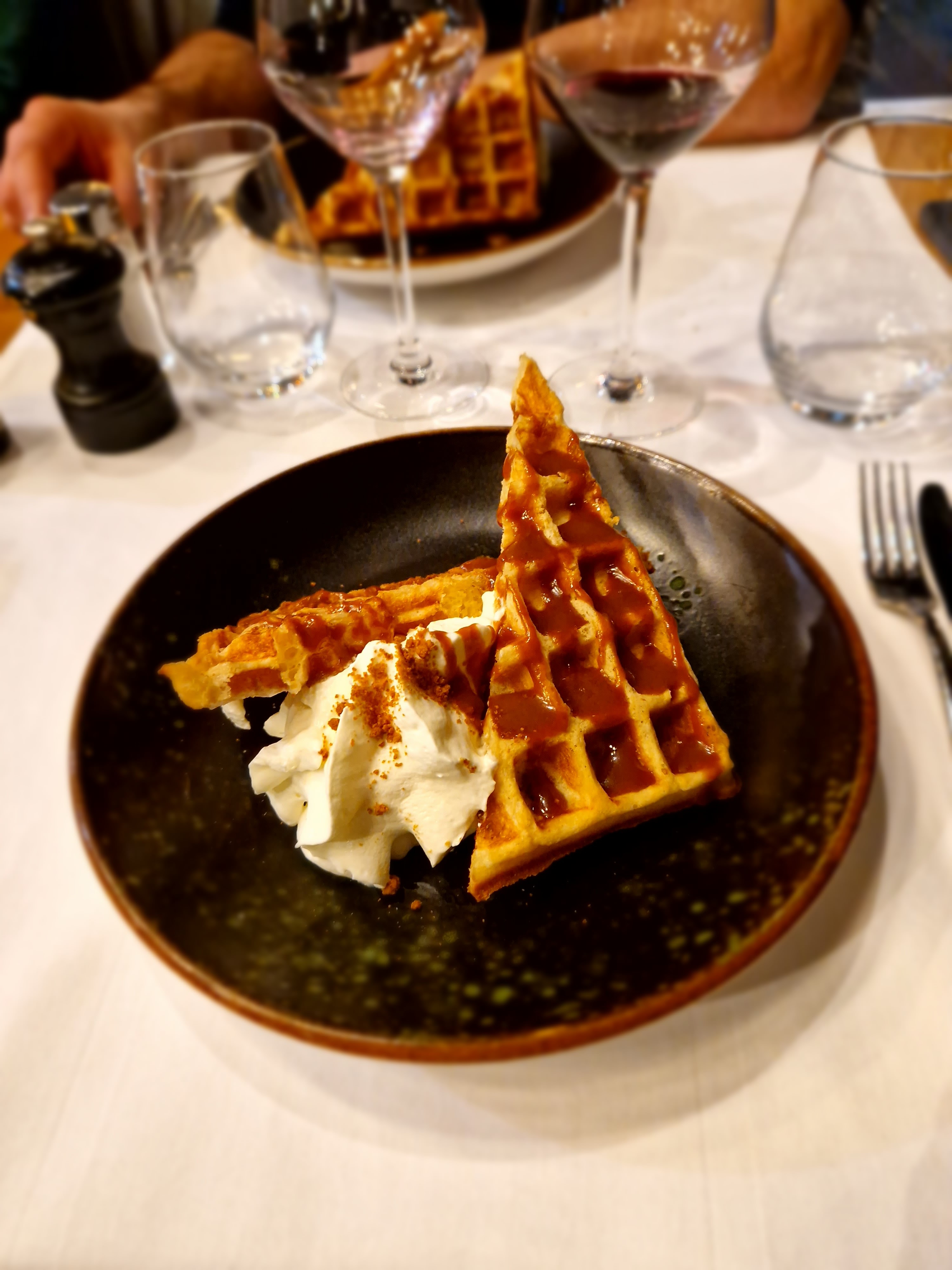 Nous y avons dîner un samedi soir. Le restaurant était quasi complet. Au premier service pas d'attente , serveur sympa belle ambiance en salle. De bons plats, menu bistronomique tarif un peu élevé mais en adéquation avec les mets. Belle décoration. Perso, la fameuse gauffre de tata paulette bonne mais rien d'exceptionnel.....