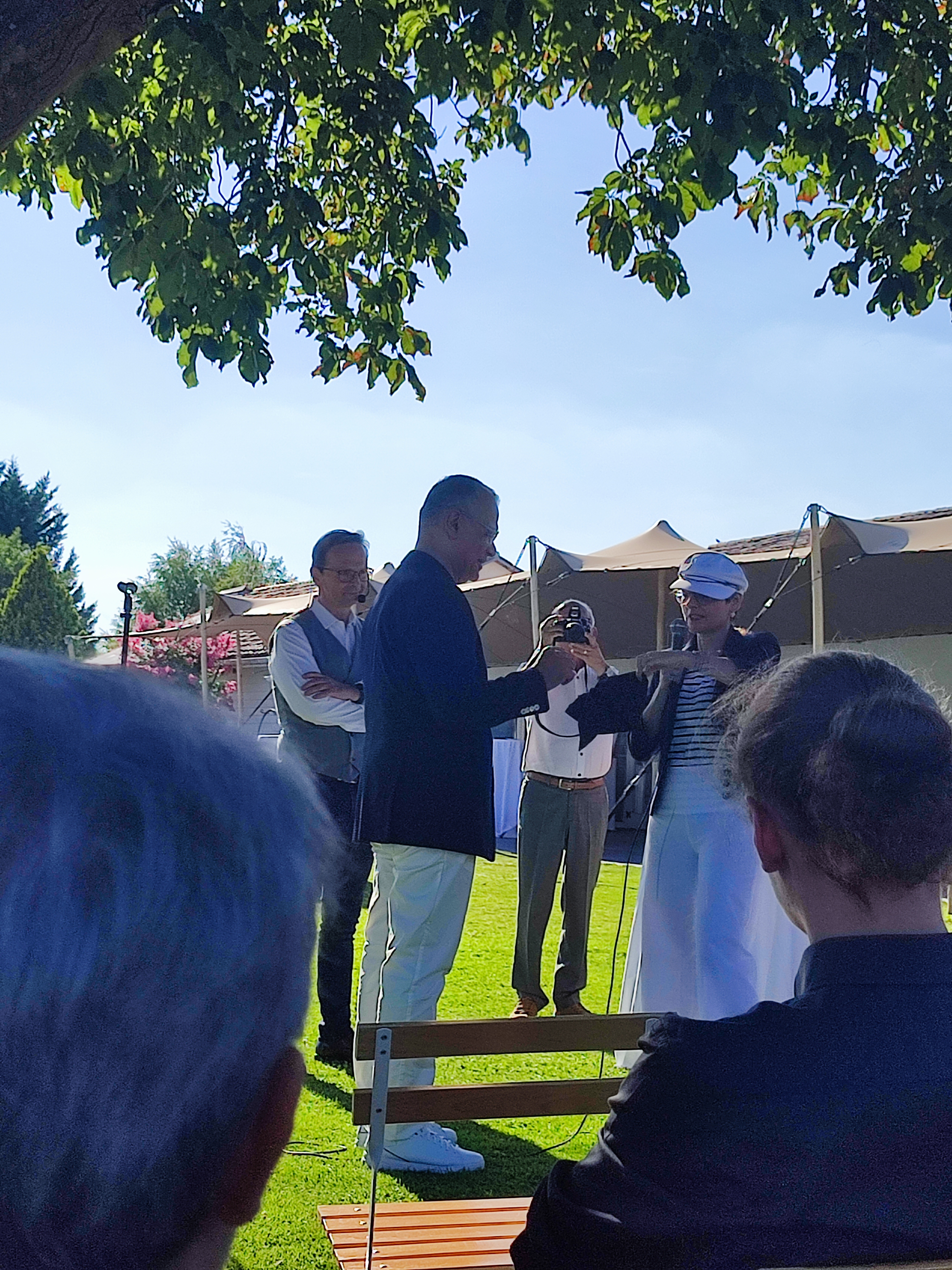 Belle salle de réception climatisée pour petite centaine de personnes. Parc charmant dont nous n'avons pu profiter, écrasé de chaleur. Nous reviendrons