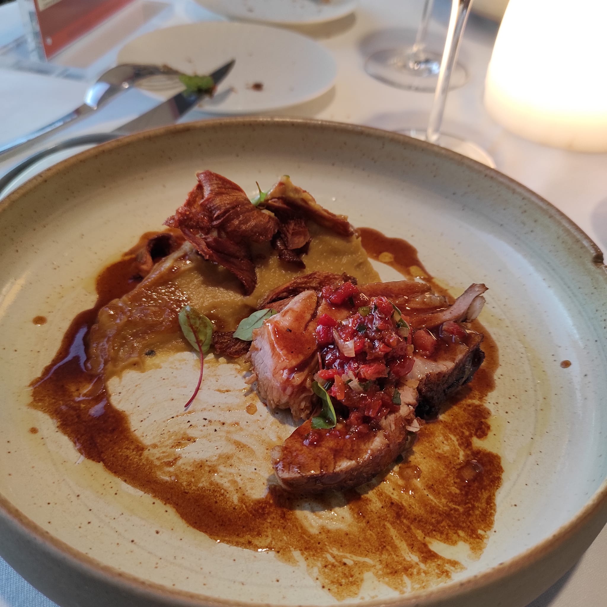 Un moment sympathique que j'ai partagé avec ma compagne au sein d'un cadre chic et apaisant agrémenté d'un service agréable et décontracté. De surprenants mis en bouche qui nous en ont mis plein les papilles. Une entrée et un plat agréablement surprenant. A refaire (à plusieurs) de jour afin de faire partage et de mieux apprécié l'étendue et la qualité du domaine Un grand Merci. A la prochaine.