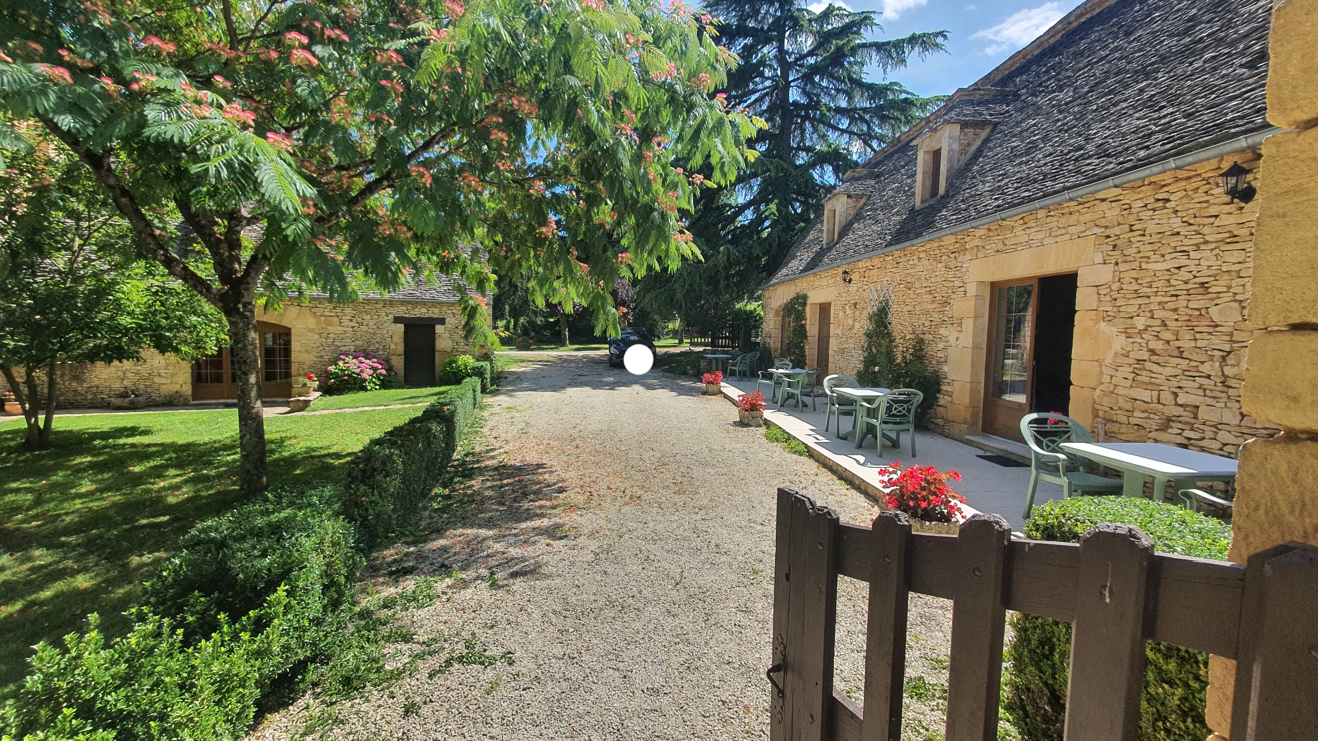 C'est un lieu à quelques minutes de Sarlat, en Dordogne qui évite les grandes foules et vous permet de visiter à votre gré tous les beaux sites. Il se situe dans la verdure avec de très beaux bâtiments perigourdin dont les toitures sont couvertes en lauze, magnifique ! ! Les propriétaires qui vous accueille sont exeptionels. Bon séjour.