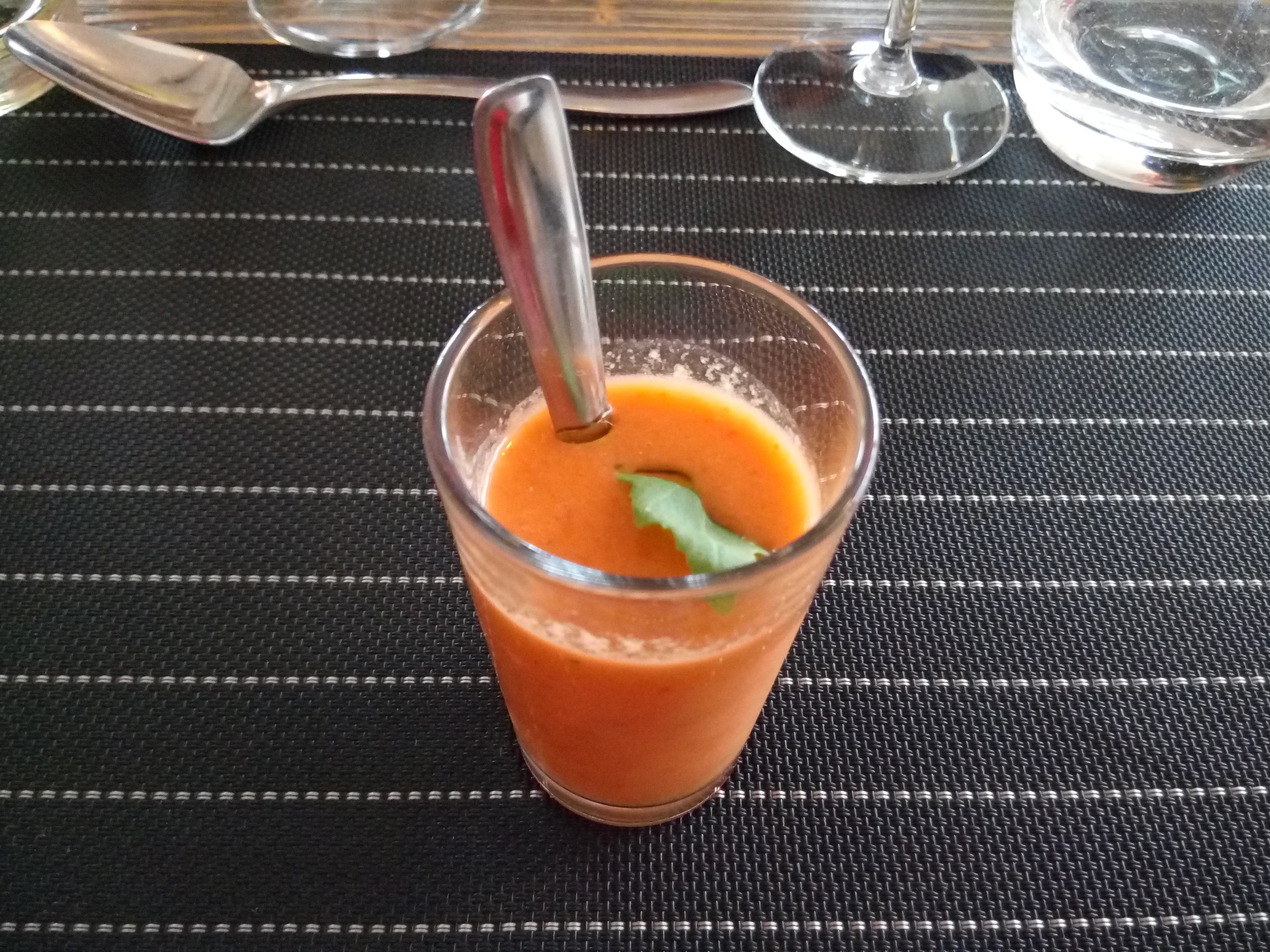 Carte inadaptée à la saison, plutôt une carte d’automne avec des marrons en amuse-bouche, brocolis, chou-fleur, carottes, pommes de terre et champignons en accompagnement, Irish coffee en dessert … en plein mois de juillet sous une chaleur de plomb. Et ce n’est le champagne chaud dû la panne de frigo qui a pu nous rafraîchir. Quel dommage de ne pas profiter des légumes et fruits de saison qui abondent sur les étals :-( Le tout étant néanmoins goûteux.