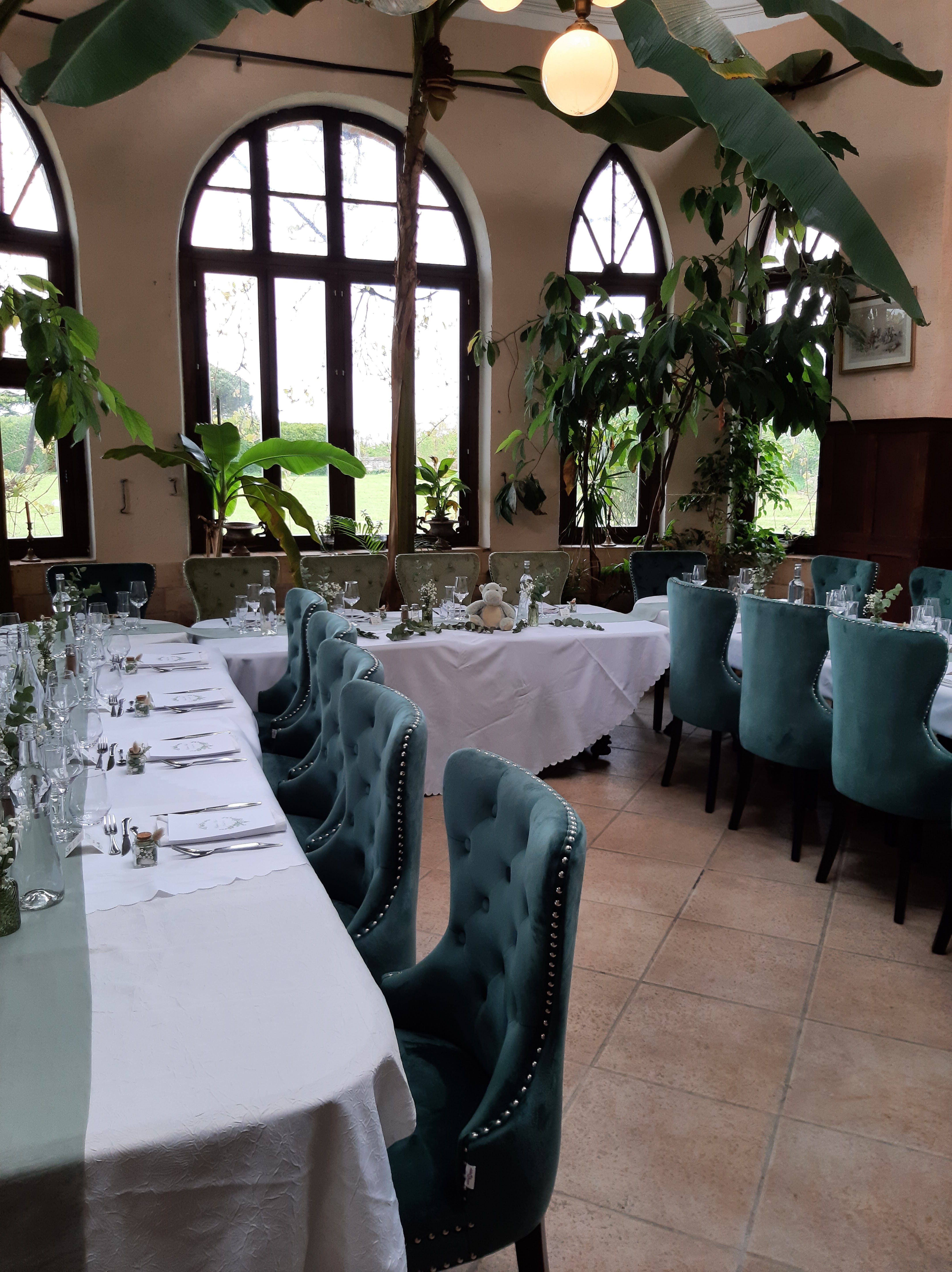 C'est un superbe endroit plein de charme et de beauté de l'entrée en passant par le bar la cour la salle de restaurant dans l'ancienne orangerie ou les superbes bananiers frôle la voûte de la salle .Dans l'assiette les mets ont une belle présentation et le goût y est même si les portions sont raisonnable on ne sort pas avec la faim un petit bémol sur les amuses bouche un peu juste par rapport au niveau des cocktails qui sont délicieux mais 1 amuse bouche par personne est trop juste ça mériterait d'en mettre 2 supplémentaire et en suggestion un petit plat avec de légumes à disposition ( je l'ai vu dans un restaurant visité et j'avais noté que c'était judicieux pour les appétits plus gourmand) surtout que l'accompagnement des plats étaient délicieux bref un endroit qui m'a séduit ou la piscine magnifique vous invite à plonger et vous allongé sur les transats mis à disposition