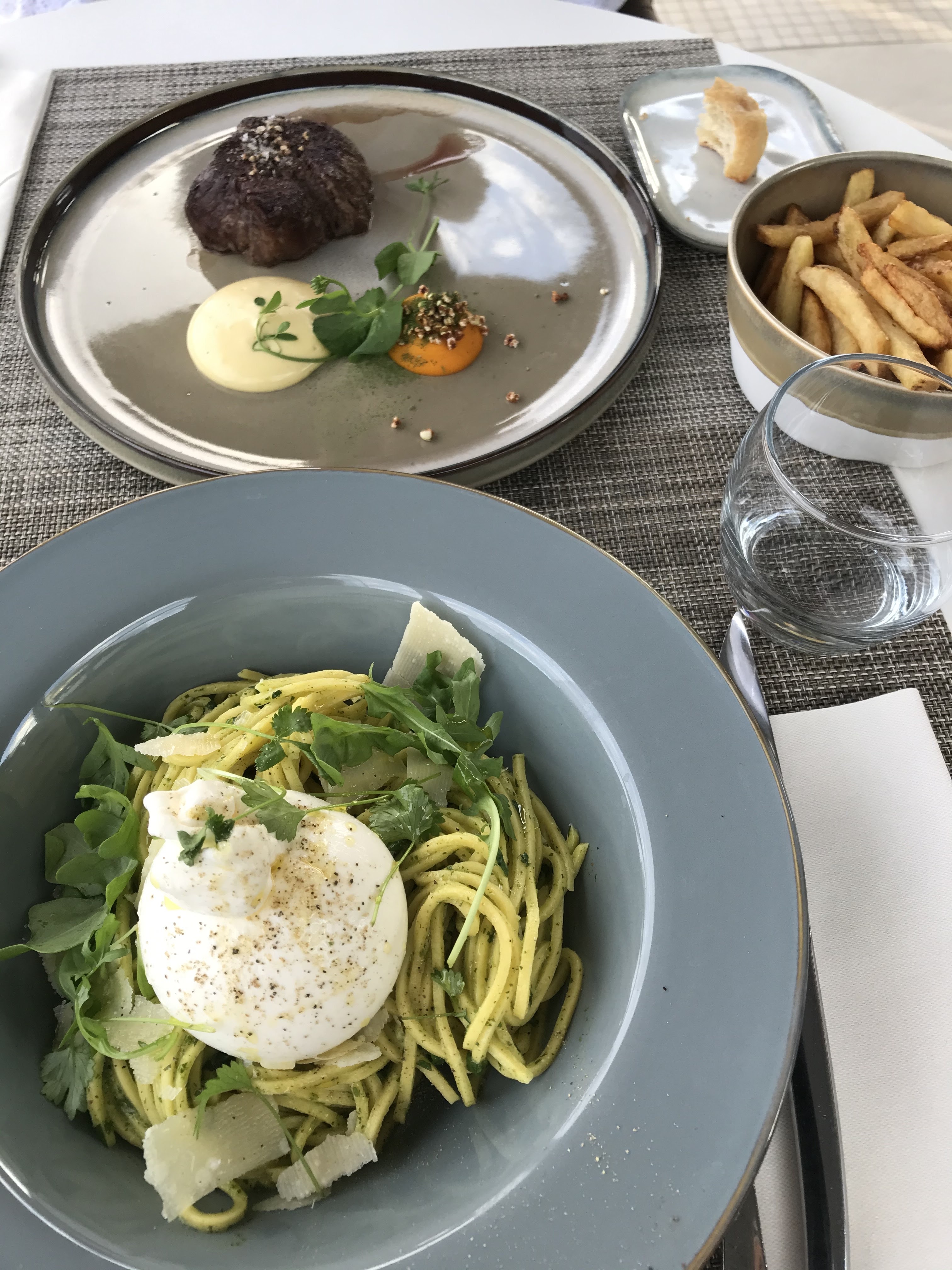 Nous connaissons le restaurant de la plage depuis plusieurs années. Nous avons été très satisfaits de la cuisine soignée, inventive et de qualité jusqu’à ce que le Chef qui a été affecté au gastronomique soit remplacé par un autre. Nous avons tout de suite vu la différence et fumes très déçus par une cuisine désormais grossière, pas élaborée, peu consistante, et médiocre, d’une qualité équivalente à des repas de cafétéria. Nous avons insisté pensant qu’il s’agirait d’une adaptation ou désorganisation, mais force est de constater que rien ne s’améliore. Par ailleurs, à noter une chaleur étouffante à l’intérieur avec une climatisation inefficace en raison des portes laissées ouvertes sur l’extérieur faisant entrer la chaleur, un service désordonné et pas structuré même si les serveuses et serveurs sont très sympathiques, et lenteur insupportable et sans fin du service. Et si l’on considère au surplus les prix en rapport exhorbitants, le compte est loin d’y être.