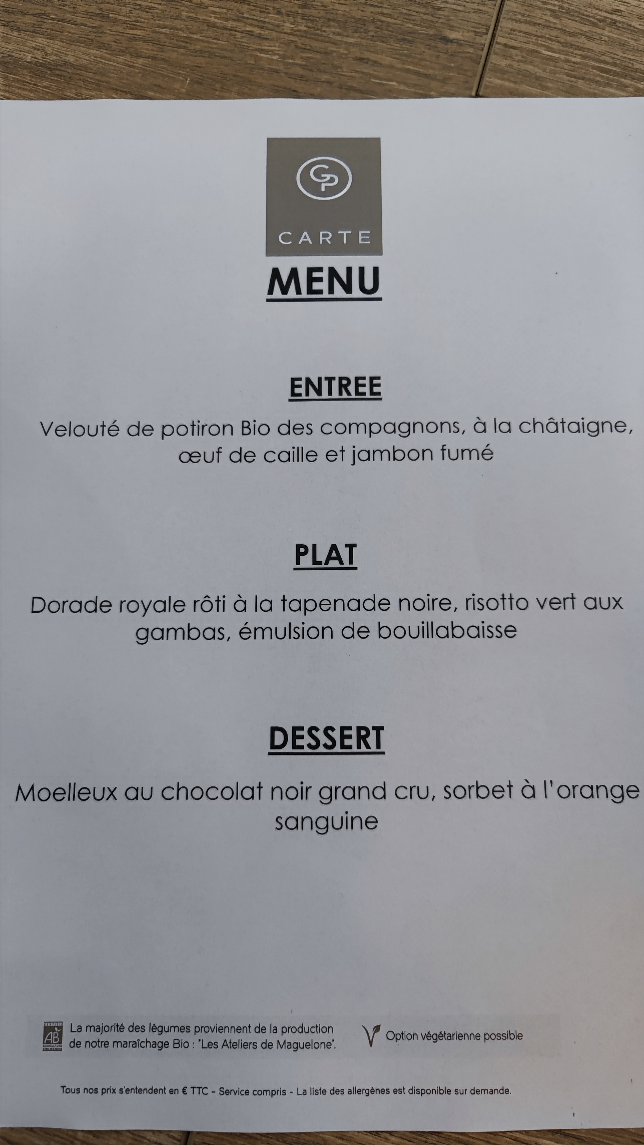 Le Cadre agréable, le personnel très sympa et professionnel, la carte est restreinte ce qui est bon signe, j'ai beaucoup aimer ce que j'ai mangé, la bohémienne de légumes était délicieuse et la tajine de St Jacques et filet de saint Pierre un vrai régal, les vins viennent des compagnons de Maguelonne c'est sympa pour eux, j'ai hâte d'y retourner.