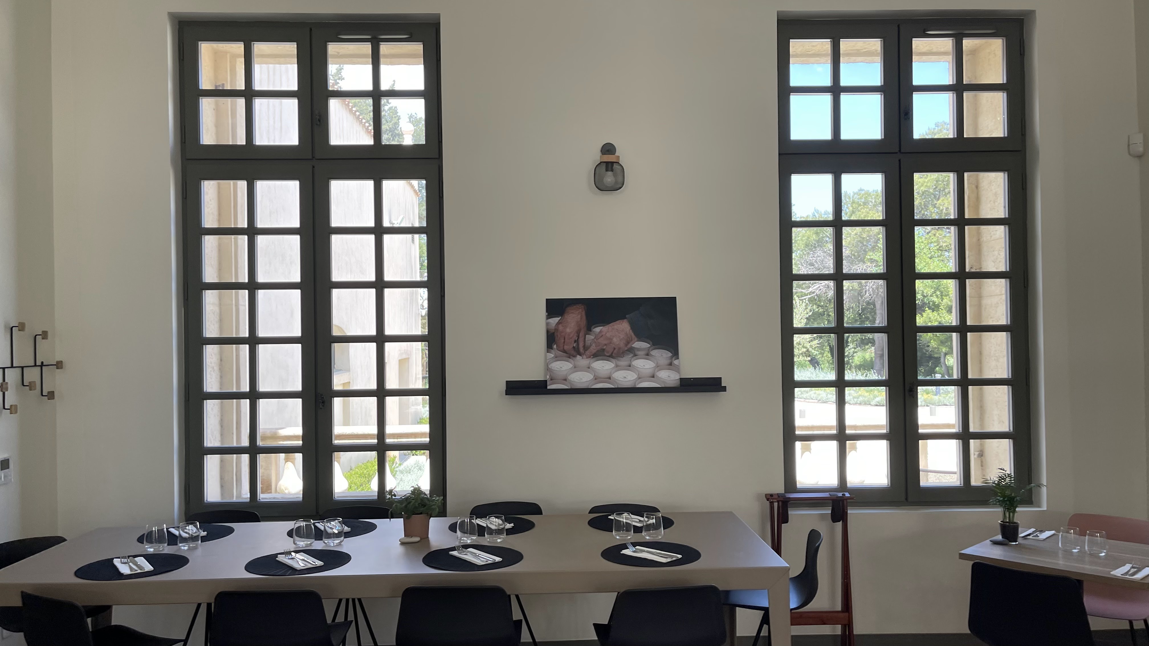 Un cadre très agréable. La terrasse donne sur un espace vert champêtre. Il y a des salles intérieures avec une belle hauteur sous plafond. Les chaises extérieures sont larges et agréables pour des personnes grandes et corpulentes.On a pas la circulation sanguine des jambes coupée. La bâtisse a été rénovée et le site est exploité par les compagnons de Maguelone ; des personnes en situation de handicap y travaillent et servent (ESAT). Nous avons été très bien accueilli et servi. Les plats sont bistronomiques et nous nous sommes régalés. Idem pour les desserts. Nos félicitations pour les salariés. Et l'endroit gagne à être découvert. Attention cependant à maintenir les prix par les temps qui courent.