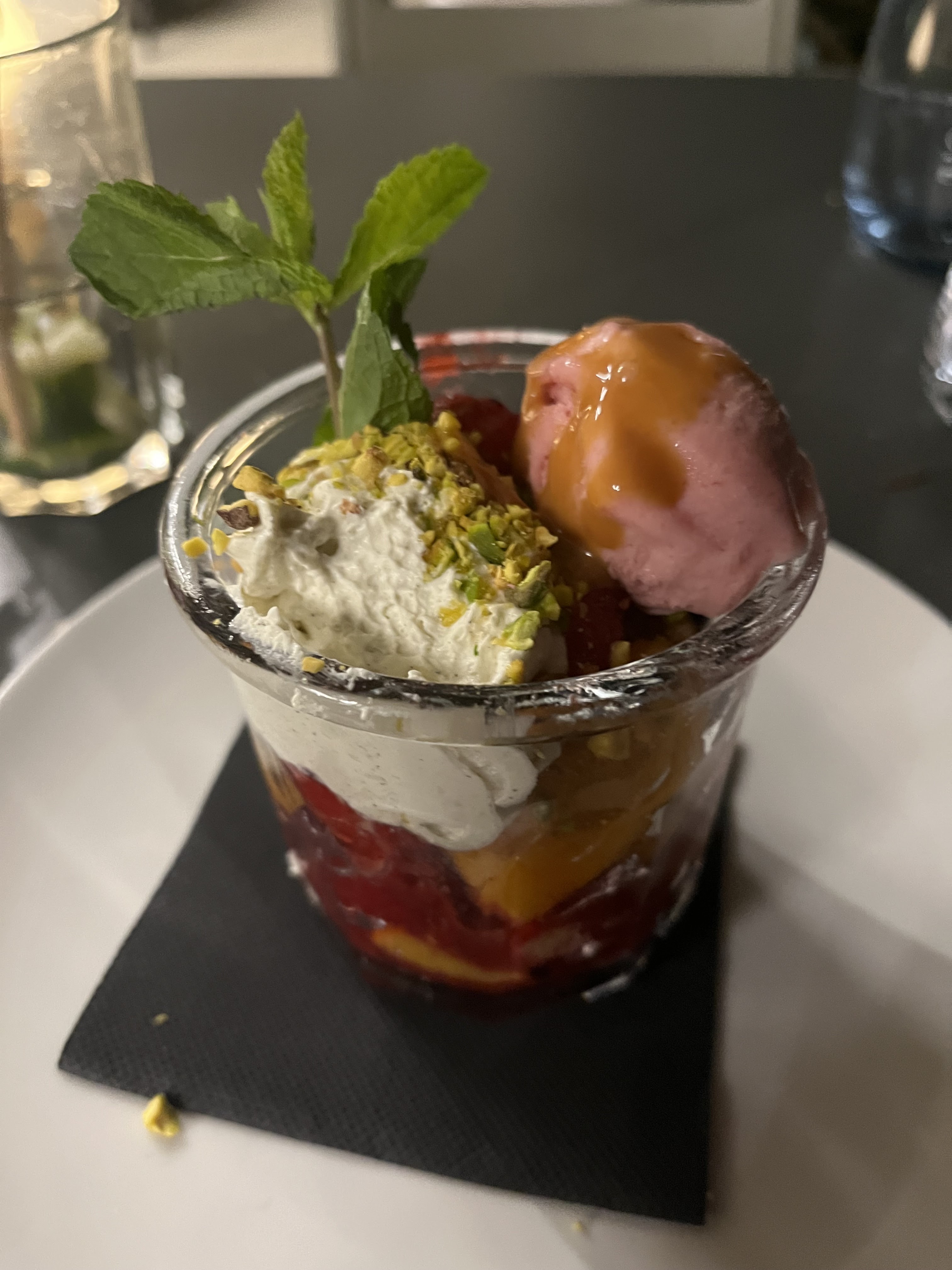 Nous étions assis sur la terrasse dans une cadre verte et ouverte. Le service était très personnel et gentil! Le repas était délicieux, bien soigné et super décoratif. Un autre plus était que les toilettes sont propres! On y reviendra!!