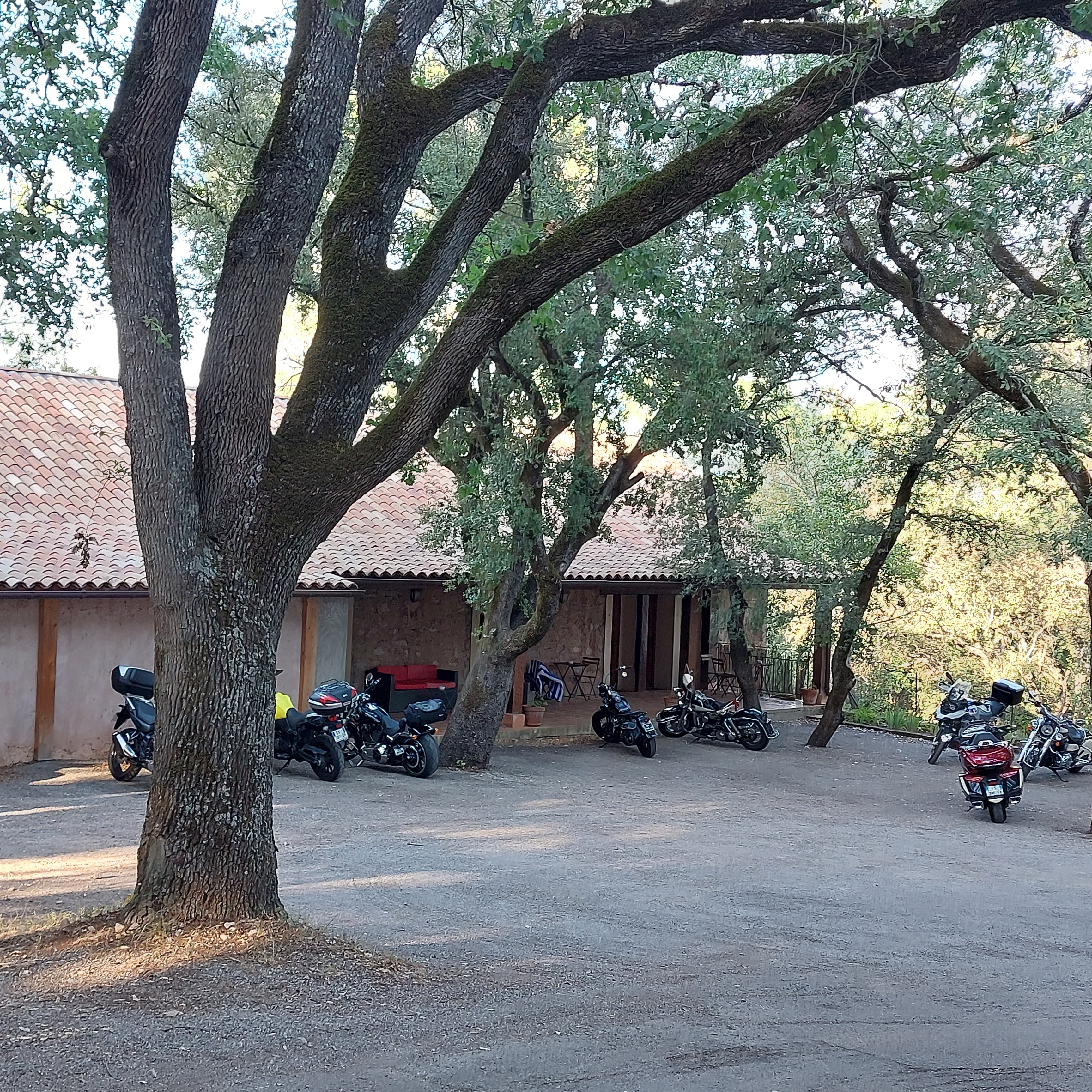 Dans un décor super sympa et très calme, chambres façon maisonnettes séparées, très propre, lit kingsize. Terrasse ombragée pour le repas et grande piscine ovale, chauffée, pour la détente. Murs en pierres, jardins...et le chat roux qui vient se faire câliner...