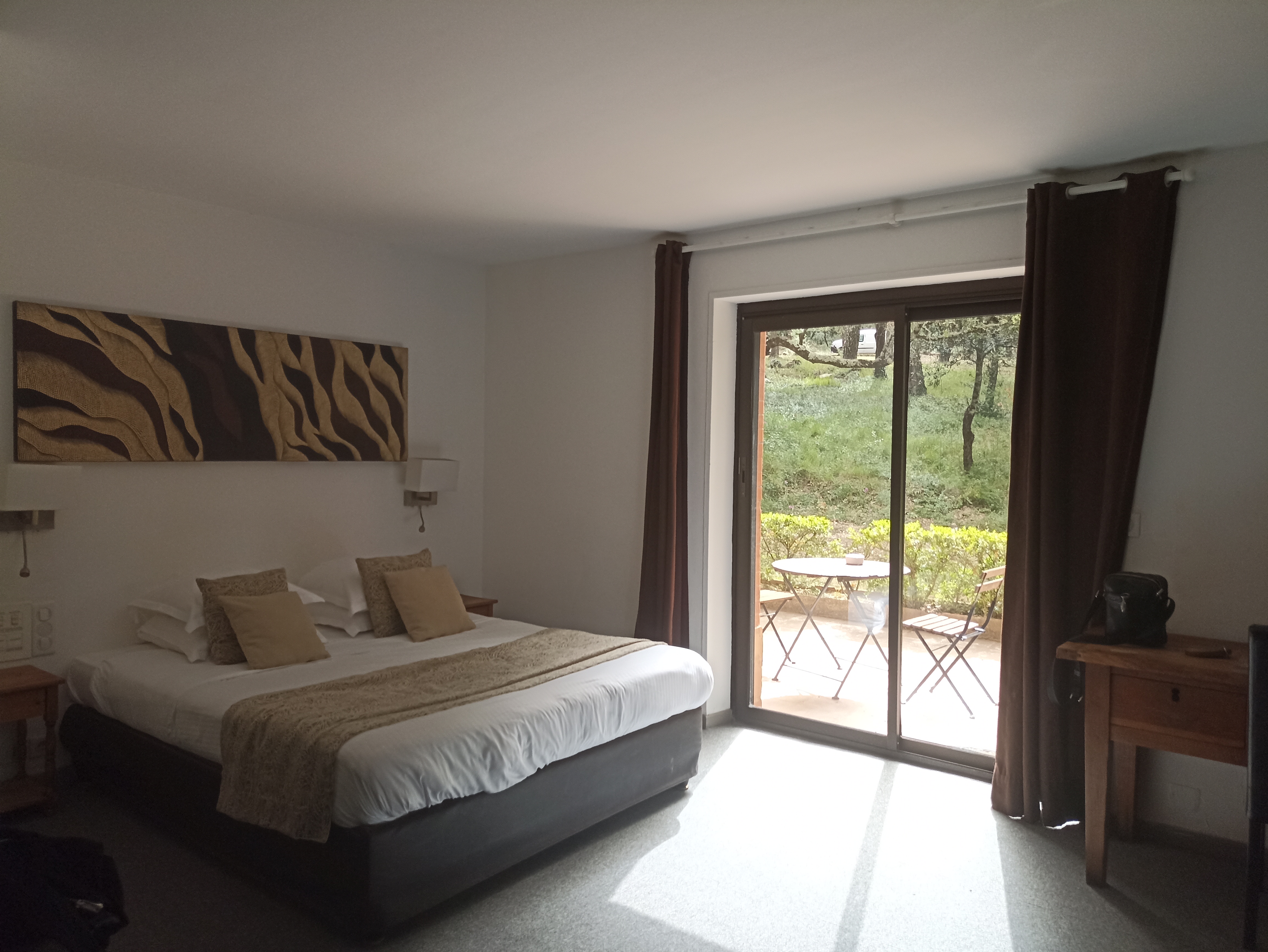 Je ne taris pas d'éloges sur cet hôtel. Nous nous sommes retrouvés bloqués près du Luc lorsque notre voiture est tombée en panne. Le directeur de l'hôtel nous a proposé un ascenseur et a discuté avec le garage qui avait notre voiture. Nous avons donc passé deux nuits ici et avons apprécié chaque minute. La chambre supérieure était spacieuse avec un coin salon et une belle vue depuis la grande fenêtre Le lit était immense et très confortable. Superbe salle de bain..... Nous avons mangé en terrasse les deux soirs, la nourriture était exceptionnelle (de loin la meilleure de nos vacances), et le service impeccable ! Nous n'avions pas d'autre choix que de passer la journée au bord de la belle piscine car nous n'avions pas de moyen de transport. Le personnel était très serviable et nous a conduits à la gare le jour de notre départ. Expérience absolument 5 étoiles. Je le recommande vivement.