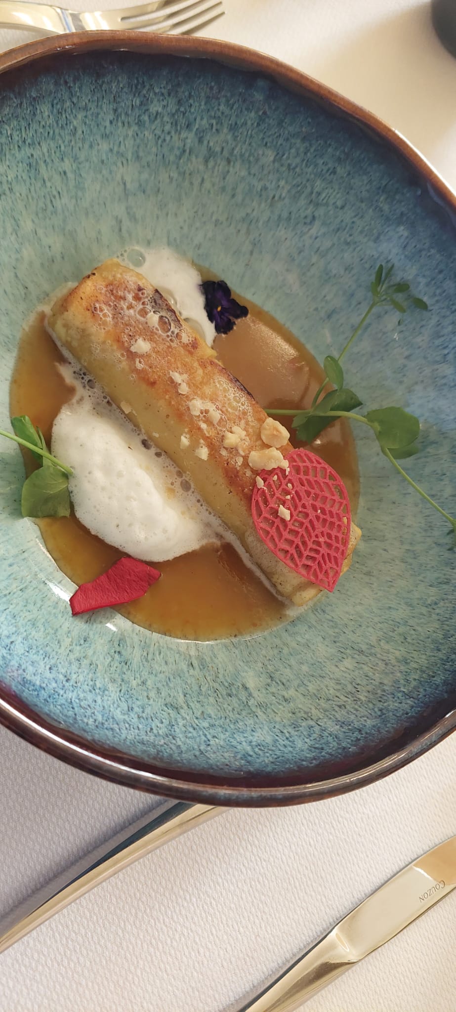 Cadre magnifique, reposant, le repas rien à dire sinon que la présentation des plats avec quelques fleurs pour accompagner est excellente. Le personnel est très sympathique. Je recommande vivement ce retaurant où la cuisine gastronomique est et sera appréciéeappréciée.