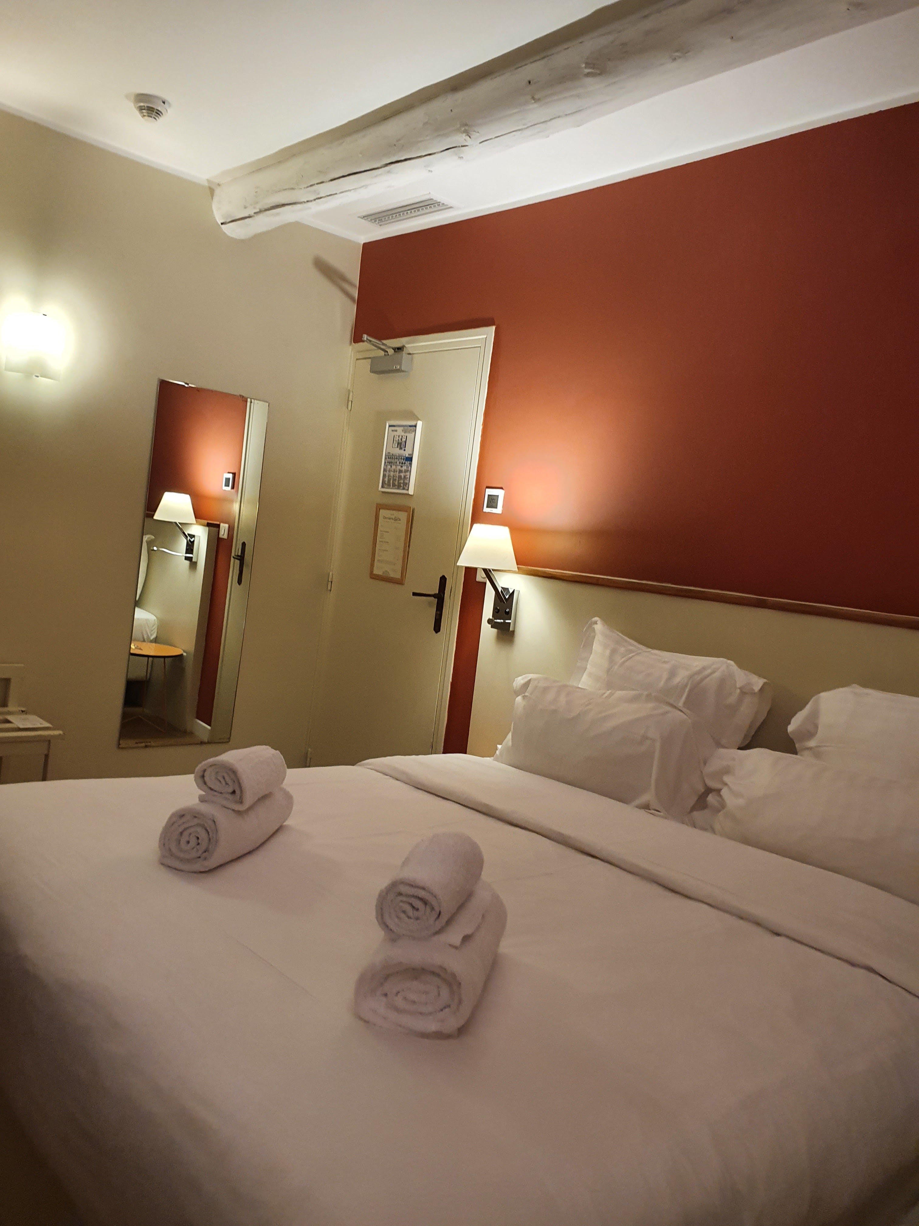 Bel endroit plein de charme. Chambre spacieuse sobre avec des teintes chaudes, agréable. Restaurant sympa avec de bons plats.