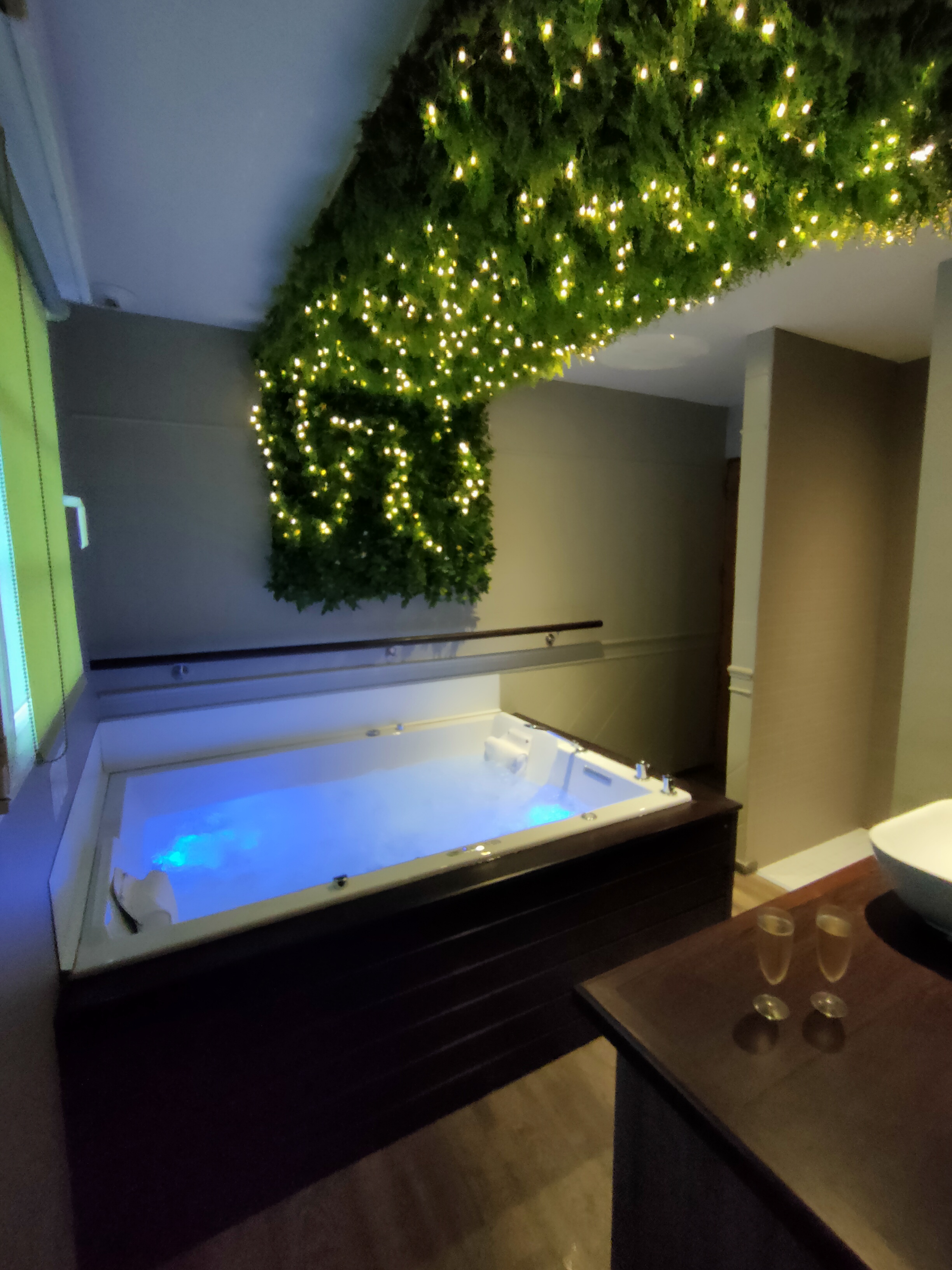 Magnifique notre chambre au rdc donnait sur un petit plan d eau paysage très joli nous avons utilisé le spa privatif avec bouteille de champagne un moment privilégié côté resto impeccable composé de 2 menus à prendre aussi à la carte et un petit déjeuner bien varie à recommander