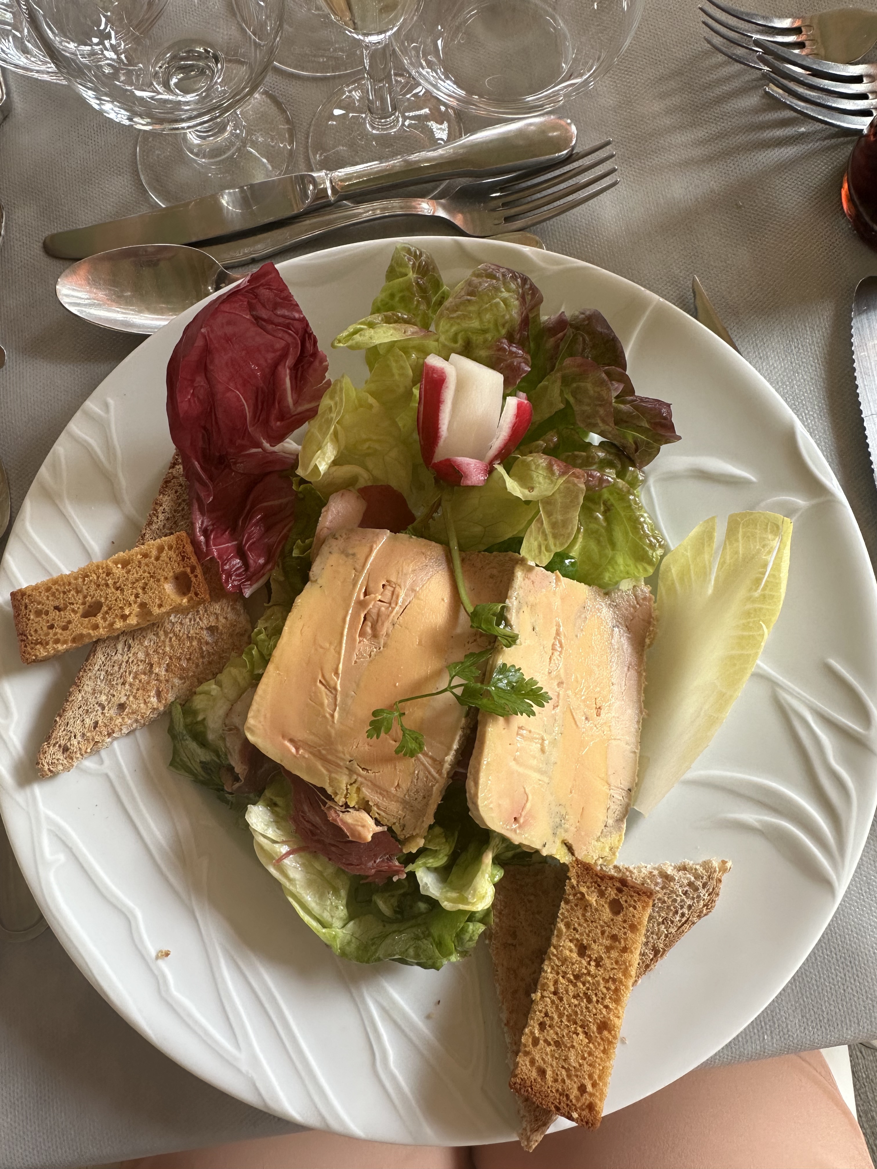 Repas de travail entrée servie rapidement pour moi trop généreux en salade par contre foie gras excellent le plat principal agneau avec une cuisson bien cuite par contre dessert gâteau au chocolat sortie du congélateur pas terrible ,j'aurais préféré un gâteau maison . Sinon très bon service .