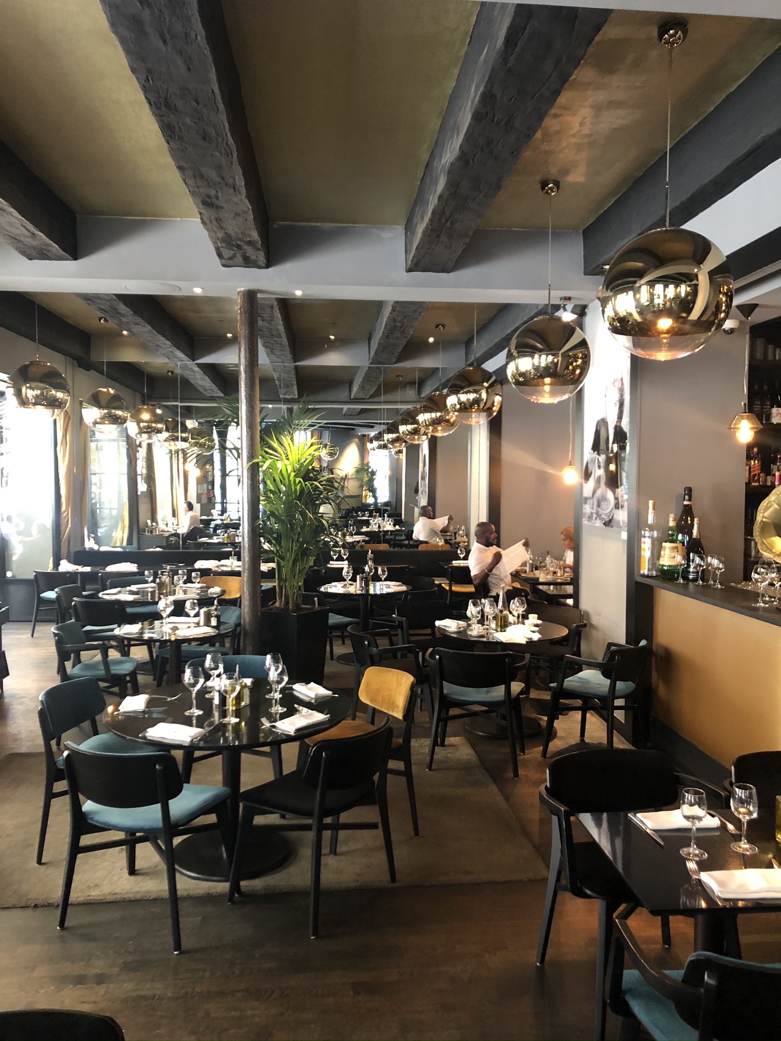 La nourriture est bonne mais reste très simple. Je trouve que le prix n’est pas du tout en corrélation avec la qualité. 85€ un déjeuner pour 2 couverts (plats + cocktail et une bouteille d’eau), ça reste élevé, même dans ce quartier. Le service était toutefois agréable. Je relève juste que le menu du jour ne nous a jamais été présenté. Le lieu est plutôt chic avec des tons sobres et une décoration élégante.