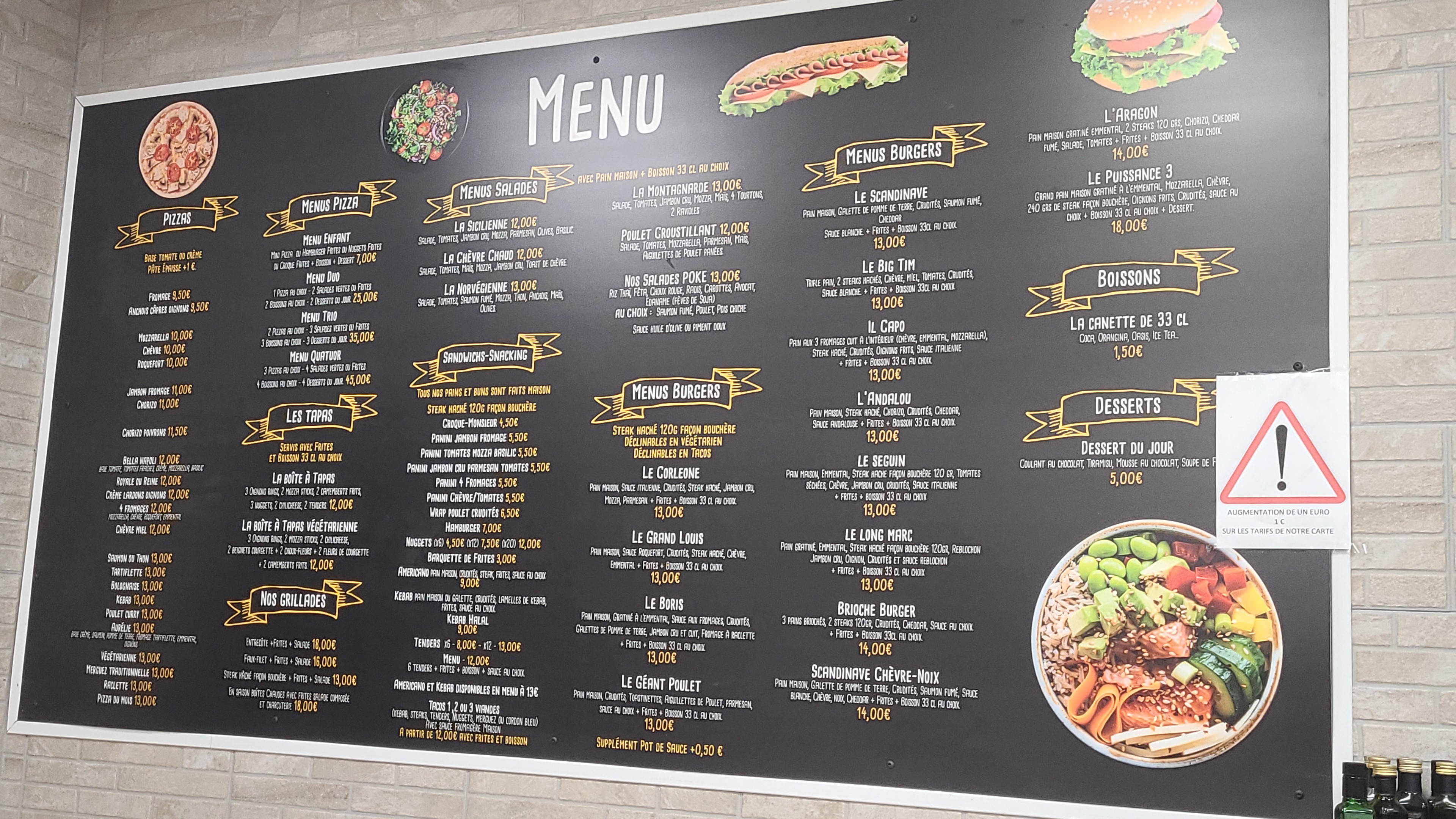 Nous sommes venus 3 fois avec mon conjoint. Les pizza la pâte est très bonne et très bien garnis Les buger pain maison grand Les salade très bonne aussi Les tapas très bon Tiramisu très bon Équipe à l'écoute, souriante ... parfait On a tester pas mal de choses à la carte et nous avons pas étais déçue Rapport qualité / Prix ✔️ parfait On recommande