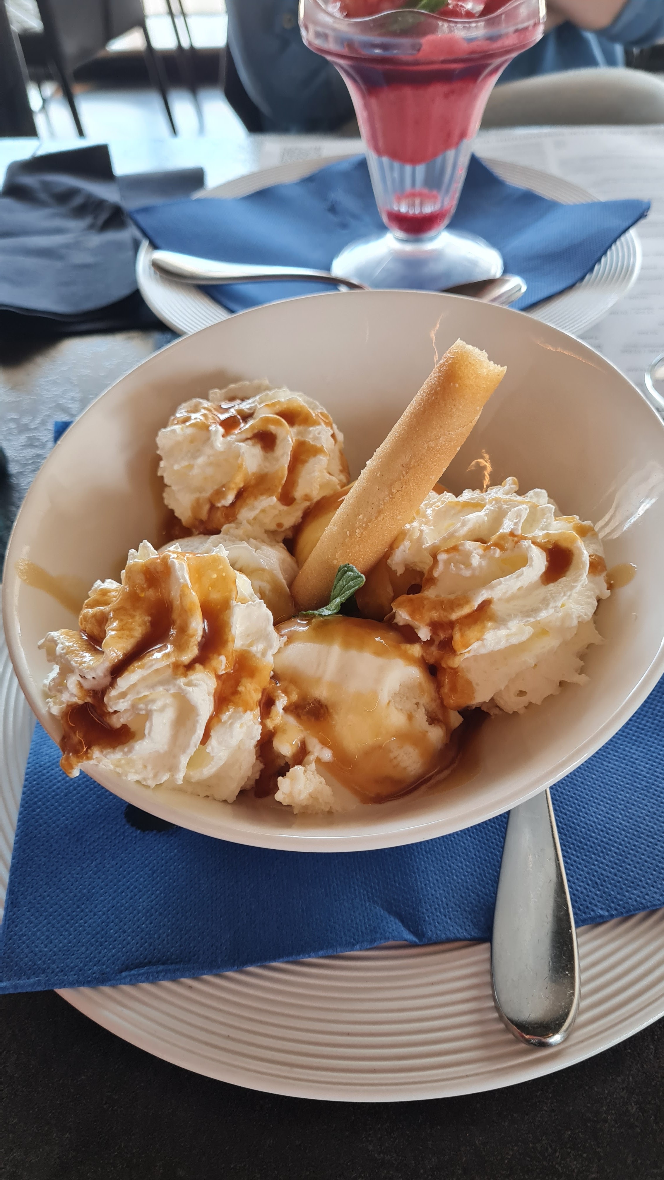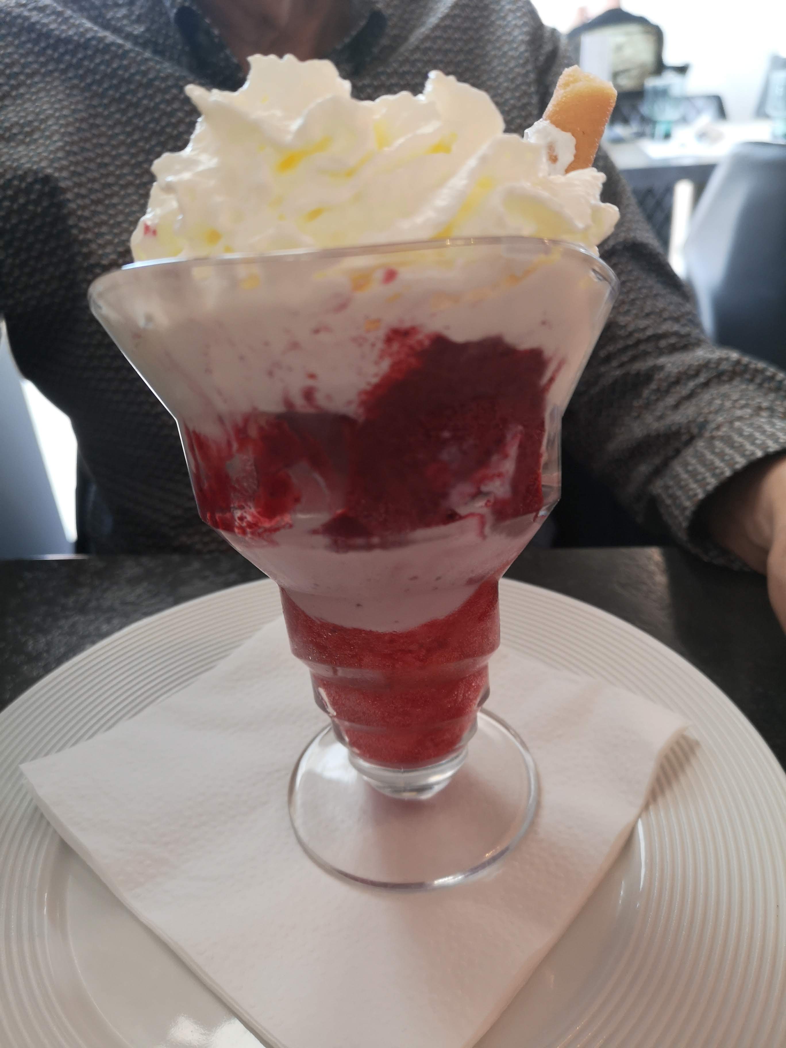 Nous avons bien mangé, salade niçoise copieuse et mon mari à pris une petite pizza qui était bonne, seul bémol, un peu long et au moment du café, j'ai reçu ma glace et mon café et mon mari attendait toujours le sien qui n'avait pas été pris en compte part le serveur , à revoir aux niveaux du service . Si je recommande