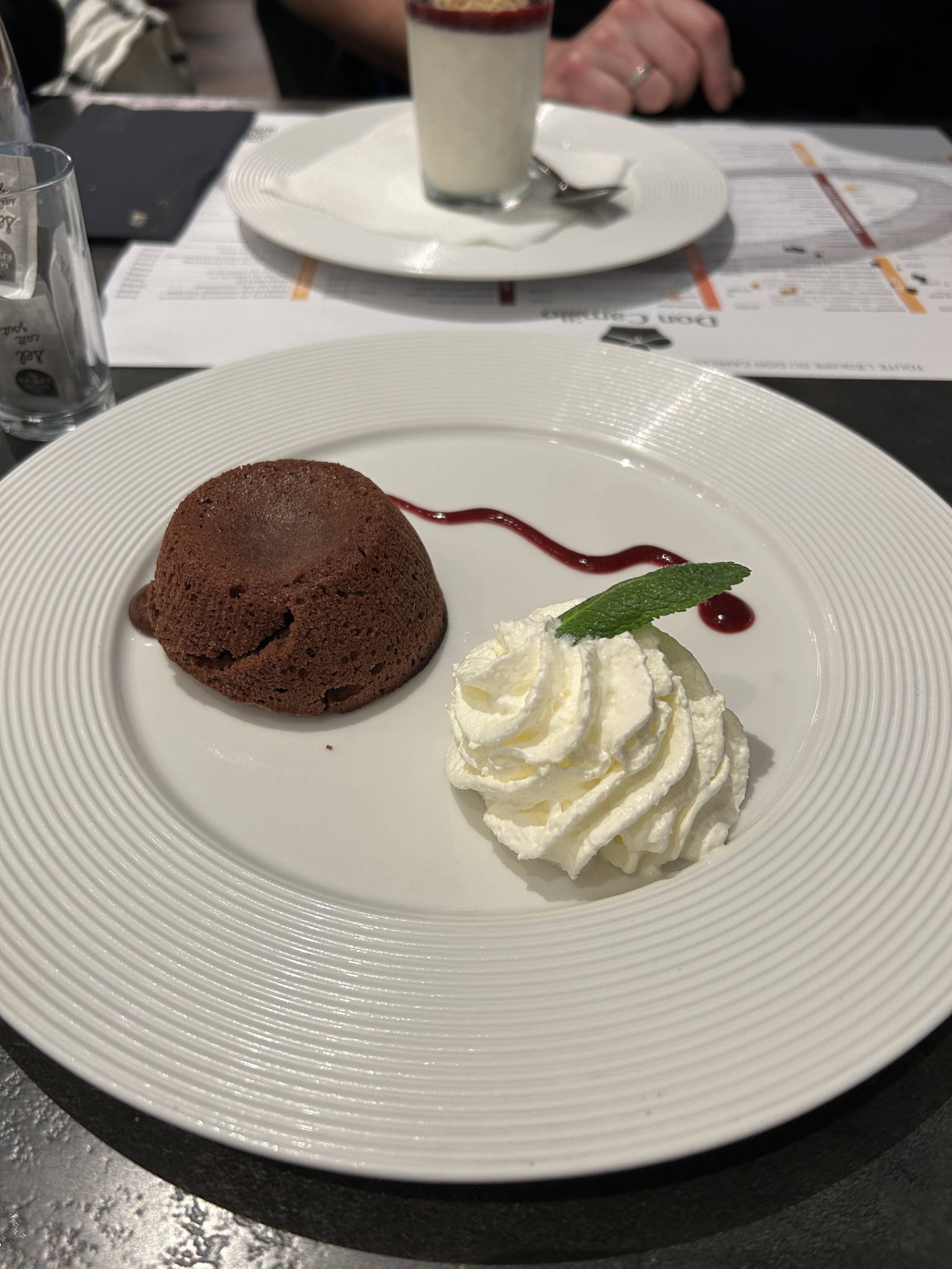Belle assiette et bien présentée .. Malheureusement des pennes plus croquantes et froides.... 😢 Enfin le dessert une dame noire sans attrait particulier... Côté service heureusement qu'il y a une serveuse très avenante et très bonne conseillère pour compenser le personnel morose ou la personne a l'accueil qui se prend pour l'accueil d'un palace 5 étoiles alors qu'elle a la prestance d'une serveuse de troquet...