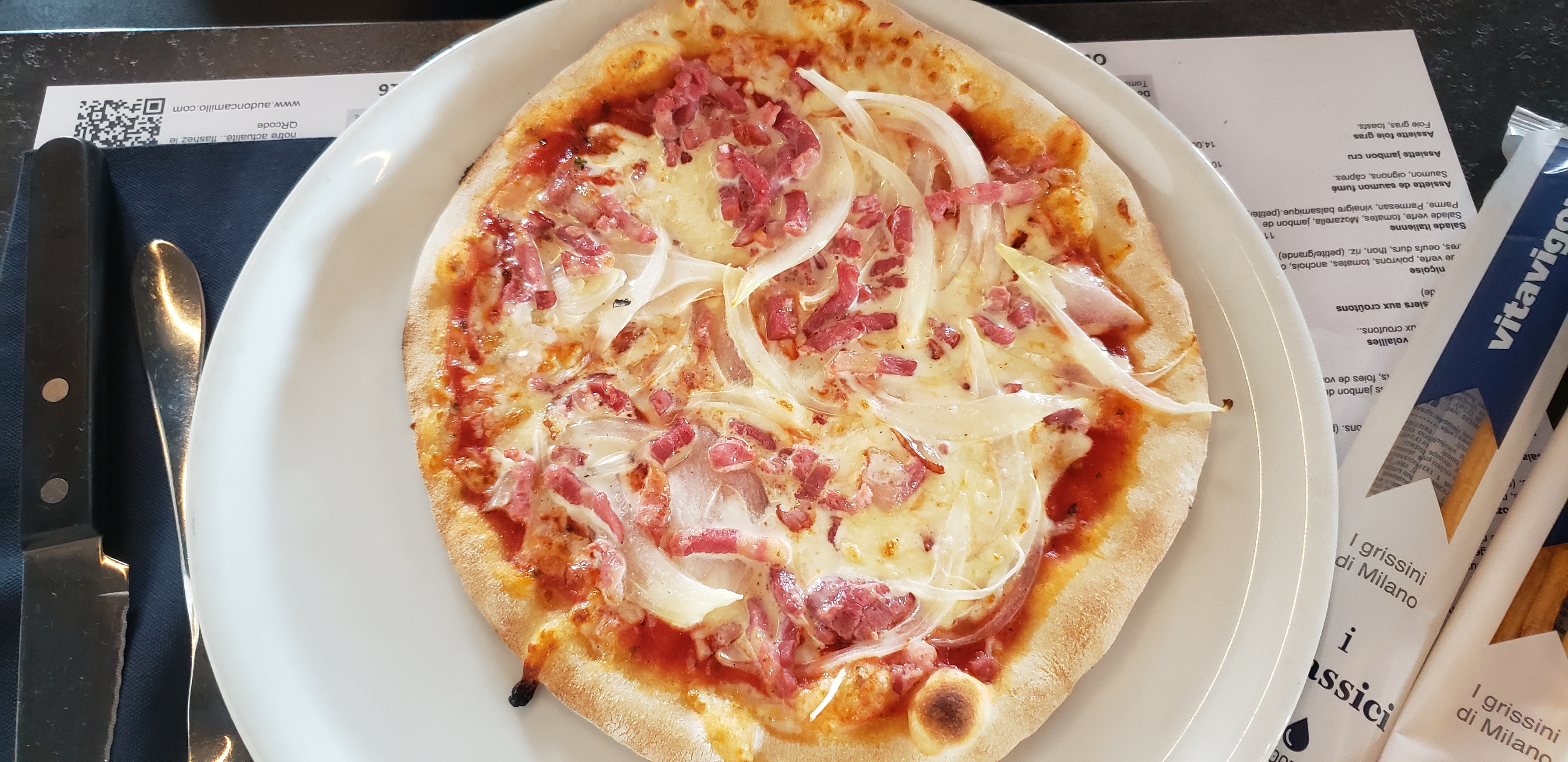 La pâte à pizza très fine mais la garniture laisse à désirer... vite fait bien fait 🙈