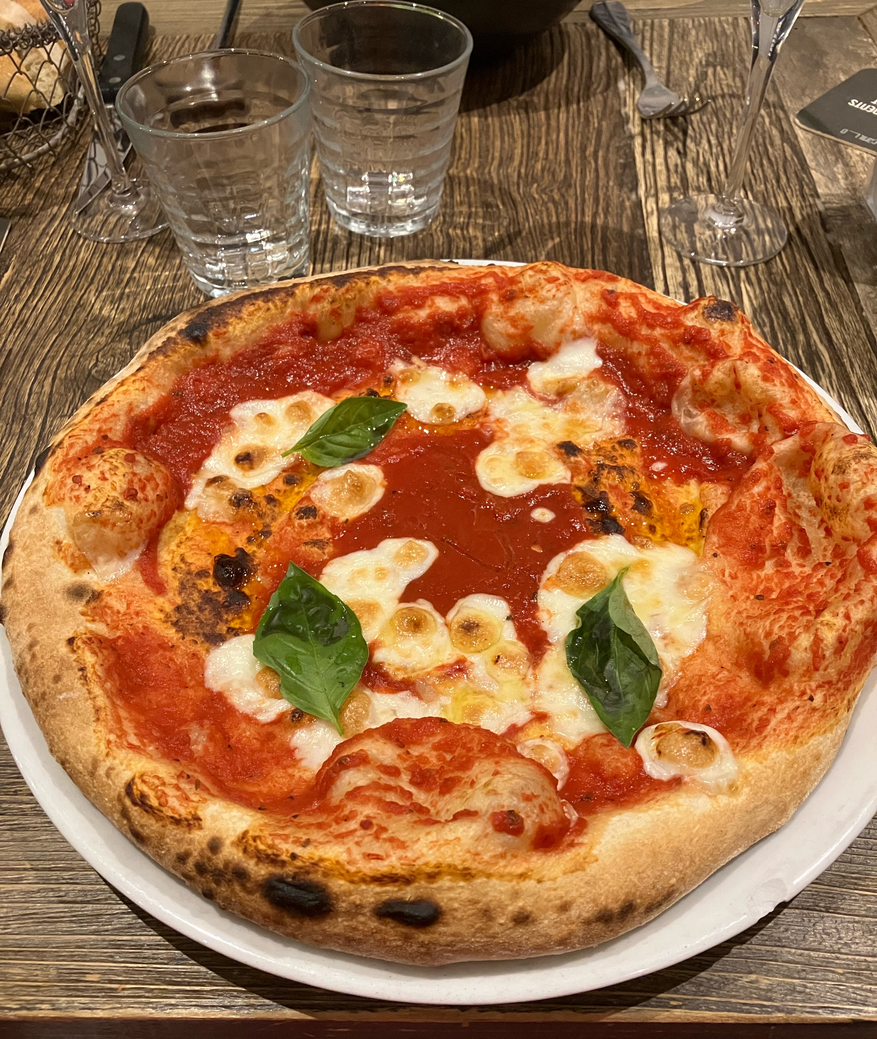 Pizzeria avec une carte assez simple mais les produits sont de qualité. Service très, trop rapide, car avec le monde qui attendait dehors il fallait libérer de la place. Belle terrasse dehors mais nous avons dû manger à l'intérieur. Pâtes très bonnes et idem pour les pizzas. Nous n'avons pas pris de dessert car le plat nous avez suffit. Prix correct